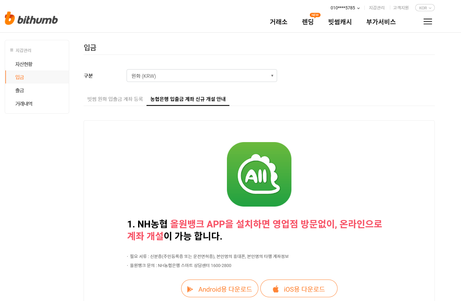 ㅣ빗썸에서 코인지갑 만들기 (농협중앙회 은행 계좌 필요)