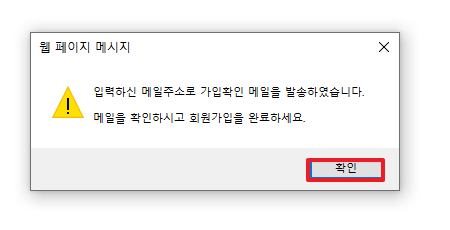 위 안내 팝업 "확인" 클릭 후 회원가입시 입력했던 메일로 들어가서 수신된 메일을 열면 아래와 같은 화면이 나온다.