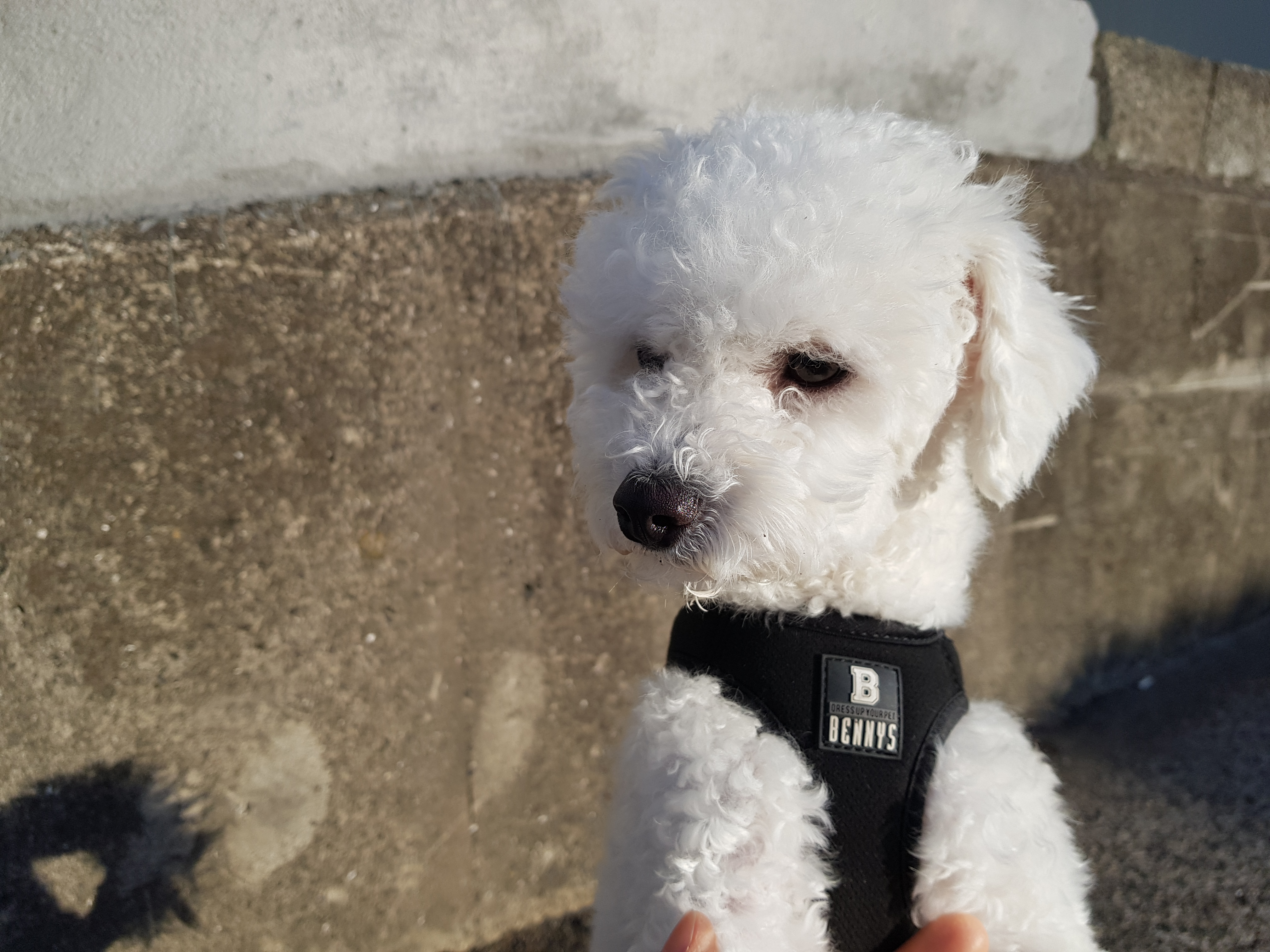 비숑은 반곱슬이기에 털빠짐이 거의 없다. 털 관리를 잘 해줘야 엉키지 않고 복실하니 귀엽다. 필자는 털 관리를 제대로 해주지 못 하기에 2~3달에 한번씩 시원하게 밀어 준다. 비숑 트레이드 마크인 하아바컷을 해주고도 싶지만 언제가 될지는 모르겠다.