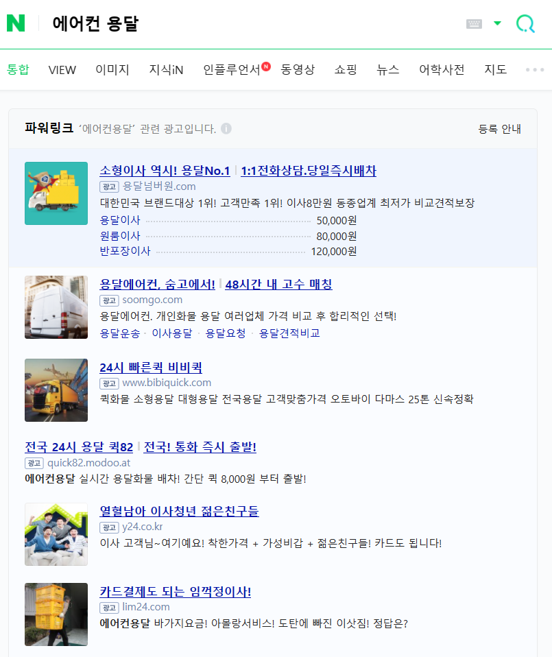 배송한다고하면 제일 먼저 택배가 떠오르는데 에어컨과 같이 큰 가전은 택배로 보낼 수가 없다. 대신 소형이사나 용달, 화물 업체에서 운송을 해주기에 이러한 업체로 연락해서 견적을 받아 볼 수가 있었다. 네이버나 다음과 같은 포털에서 검색창에 ‘에어컨 운반’이나 ‘에어컨 용달’로 검색해도 소형이사나 용달 업체가 나온다.