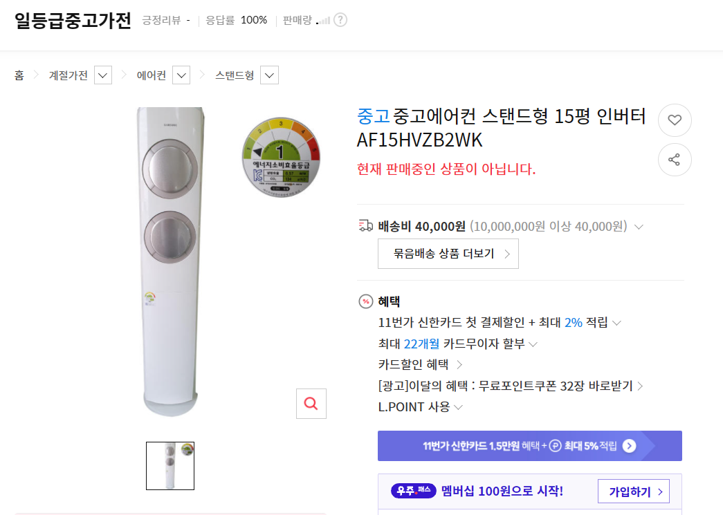 여하튼 배송비+설치비 VS 중고 가격 비교해본 결과 중고로 사는것보다는 지금 있는걸 운반해서 쓰는게 훨씬 이득이다. 더군다나 지금 에어컨은 고장도 없고 깨끗하게 사용해서 필자가 보증할 수 있는 물건이기에!