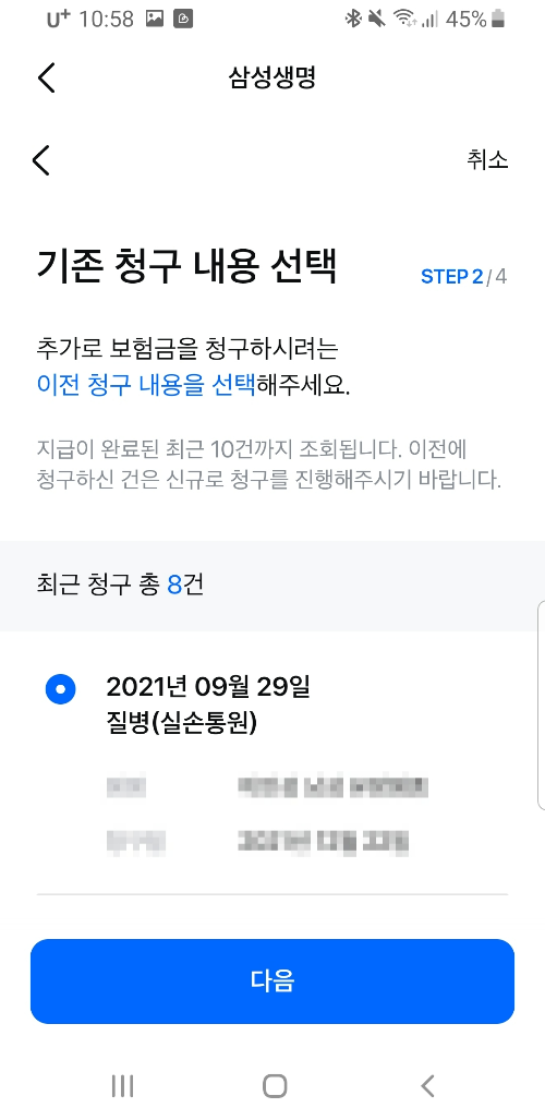 이번 보험금 청구하는데 3분 남짓한 시간이 걸린 것 같다.
