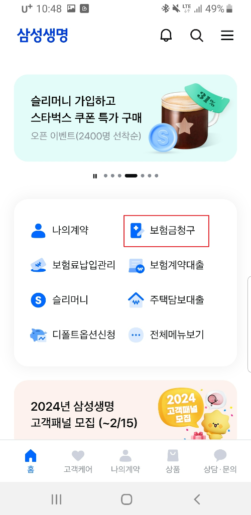 이전까지는 삼성생명 앱에서 보험금을 청구했었는데 모니모라는 삼성금융 앱이 새로 생겨 이 어플을 설치해야 한다.