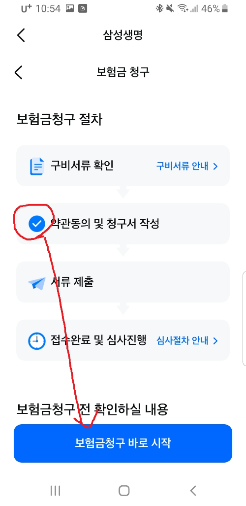 약관 동의를 한 뒤 아래에 있는 '보험금청구 바로 시작'을 터치한다.
