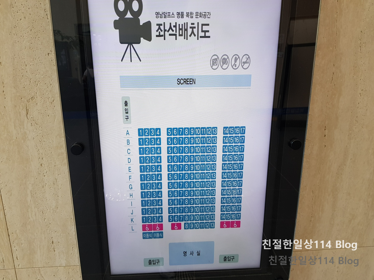 좌석 예매시 참고하면 좋을 알프스시네마 2관 좌석 배치도.