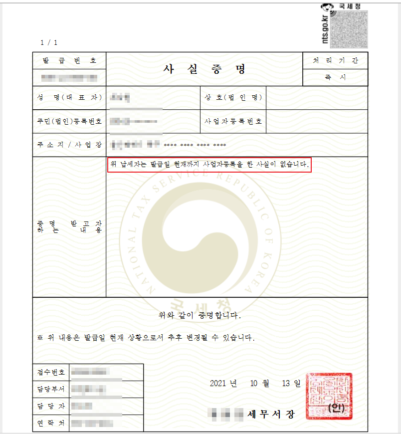 ㅣ사업자등록사실여부 서류를 발급받아보니