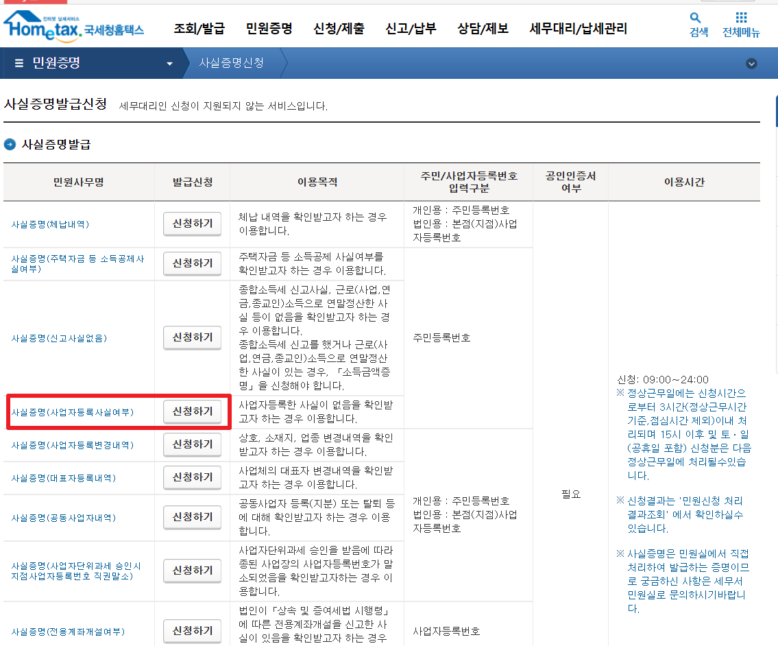 ㅣ사실증명(사업자등록사실여부) 인터넷 간편 신청/발급하는 방법