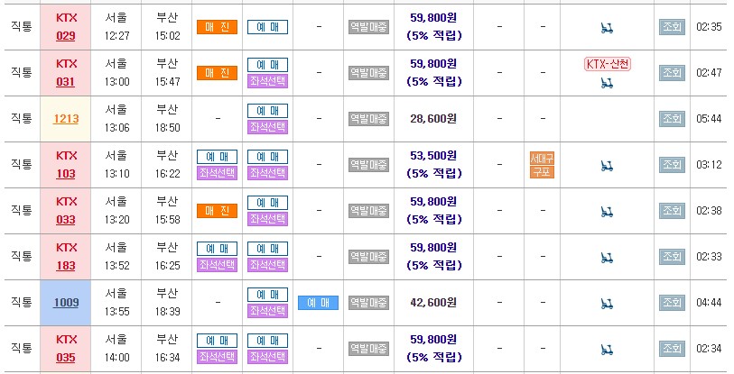 다음으로 서울역에서 부산역까지 어느 교통수단이 얼마나 걸리는지 알아보도록 하자.