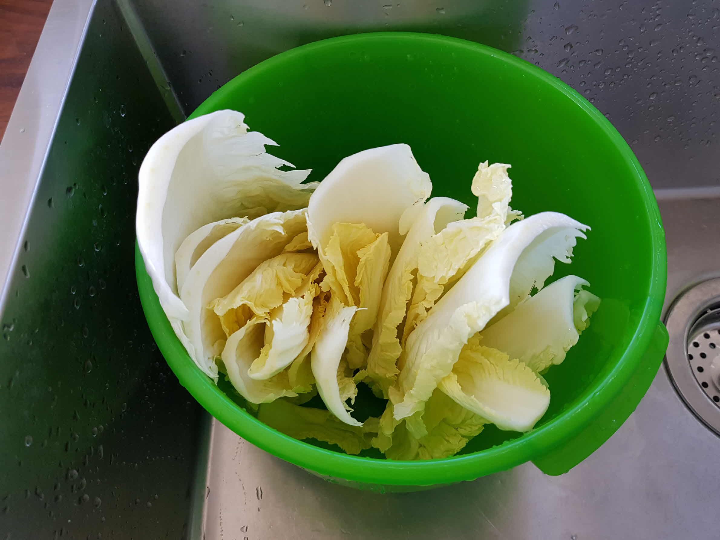 야채는 씻어서 채반에서 물기를 빼주고 소고기는 키친타올에 펴서 올려 핏물을 빼준다.