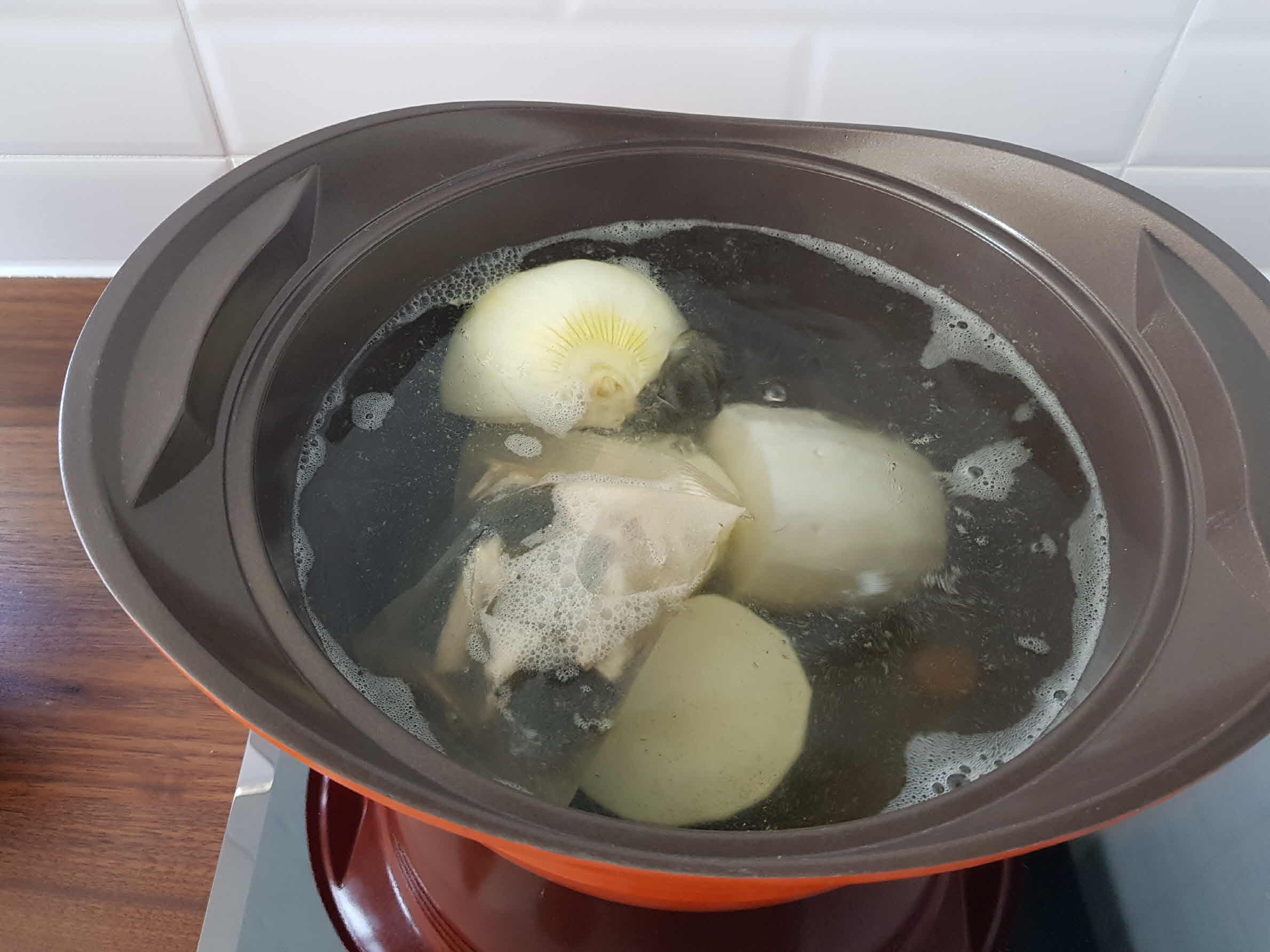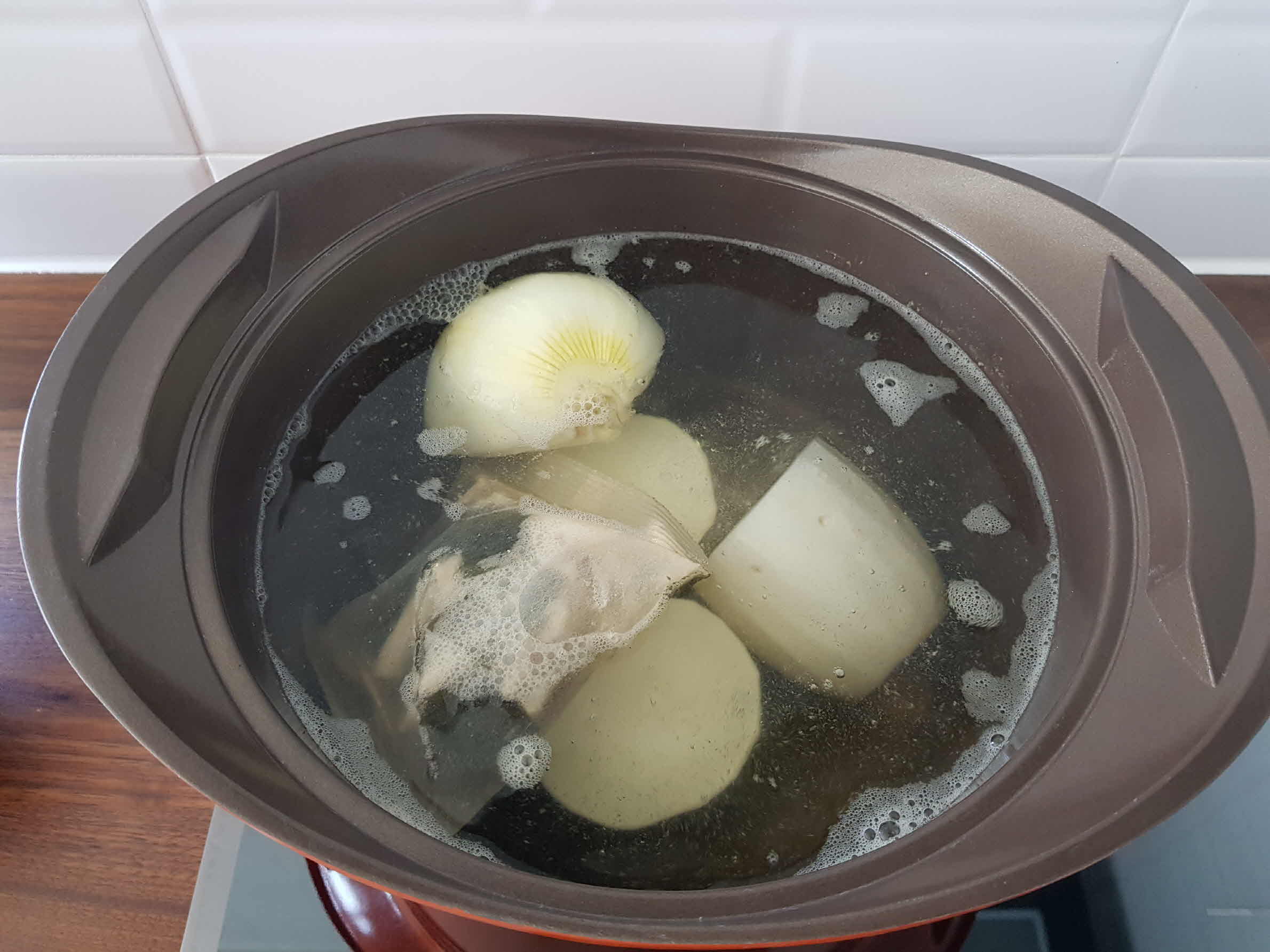 다시팩은 물이 끓고나서 5~7분 정도 더 끓인 후 건져낸다. 양파와 무는 오래도록 푹 끓여줘야 국물에 시원한 맛이 난다. (이번에 시간이 부족해 오래 끓이지 못한 것이 약간 아쉬웠다.)