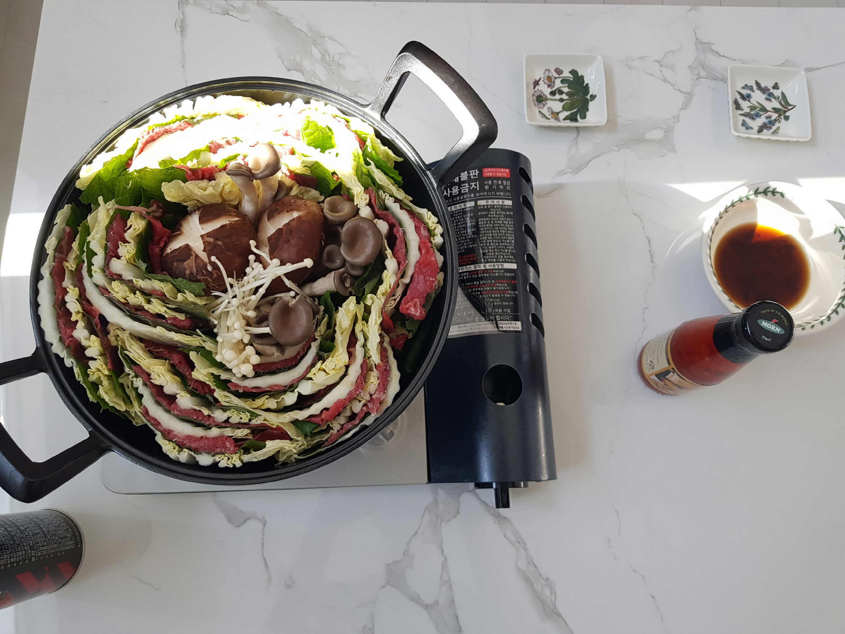 손님을 맞이하기전 이렇게 준비를 해두었다가 보기 좋게 먹음직스러운 모습을 한번 감상하고 끓인다.