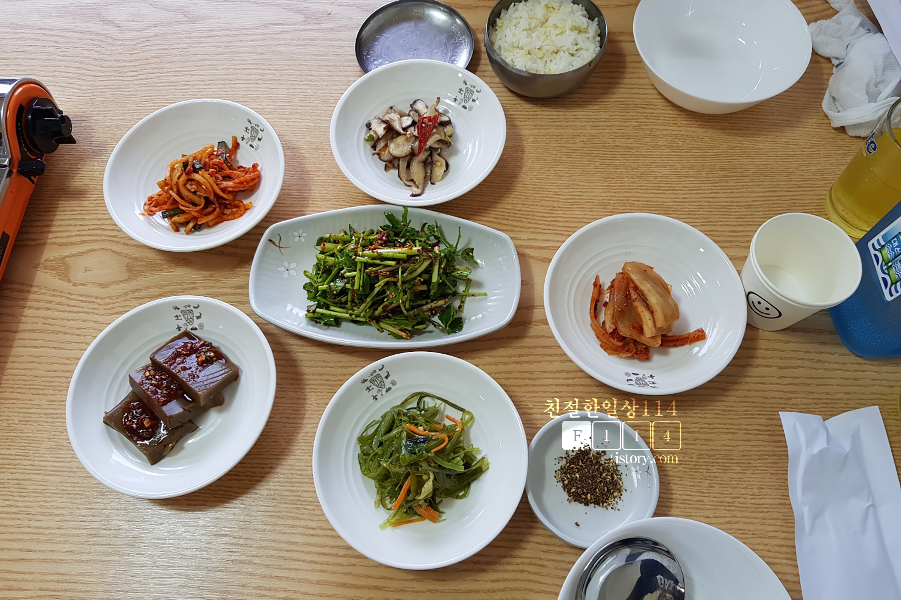 탕이 나오기전에 먼저 밥과 찬이 나온다. 반찬 종류는 6가지로 많지는 않지만 적지도 않다. 반찬은 한지 오래 돼 보이지도 않고 바로 꺼내어 내온듯 마른 것 없이 맛있어 보인다.