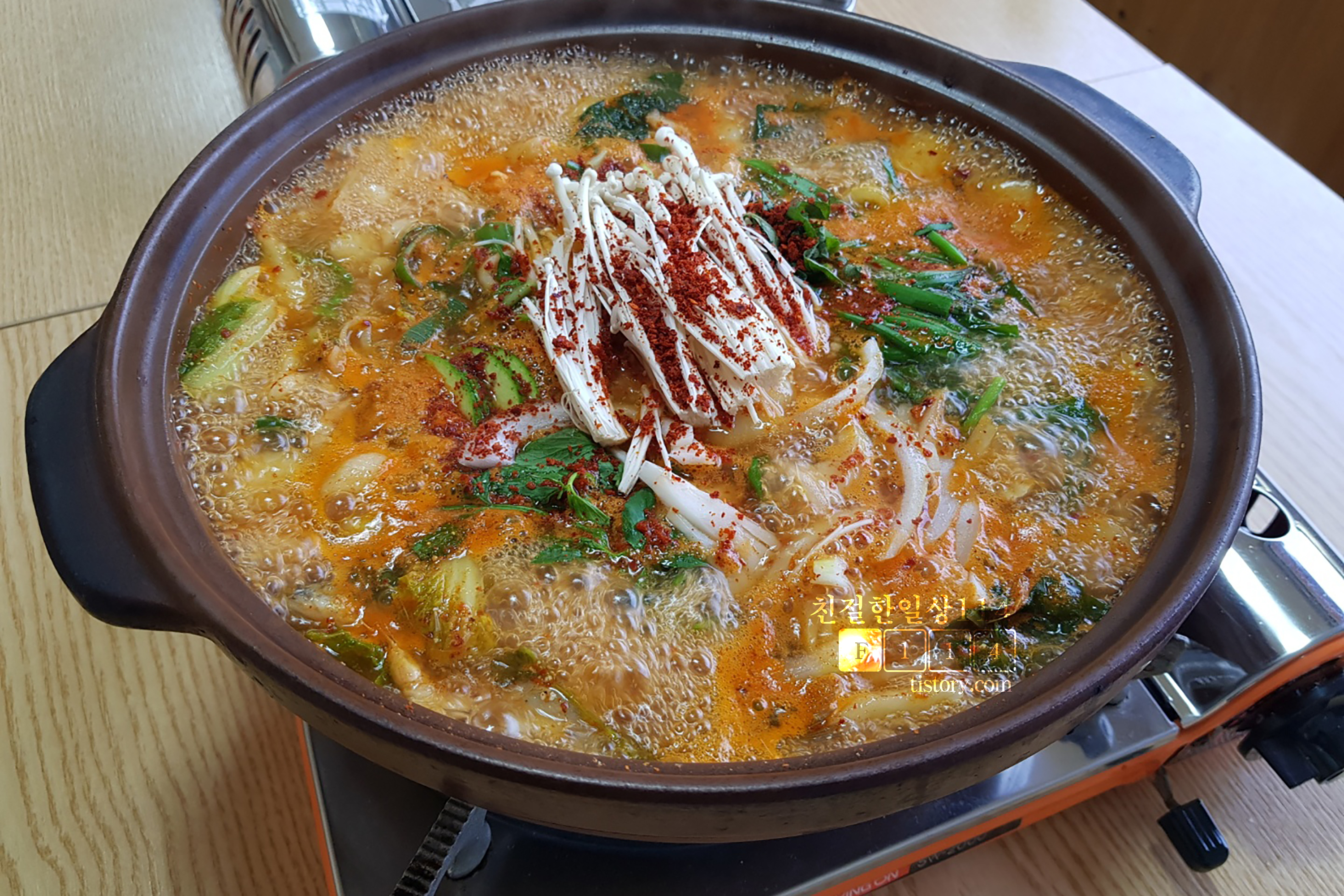 이렇게 수제비도 들어있고 작지만 꽃게도 들어있어 국물의 시원함을 더해 준다.