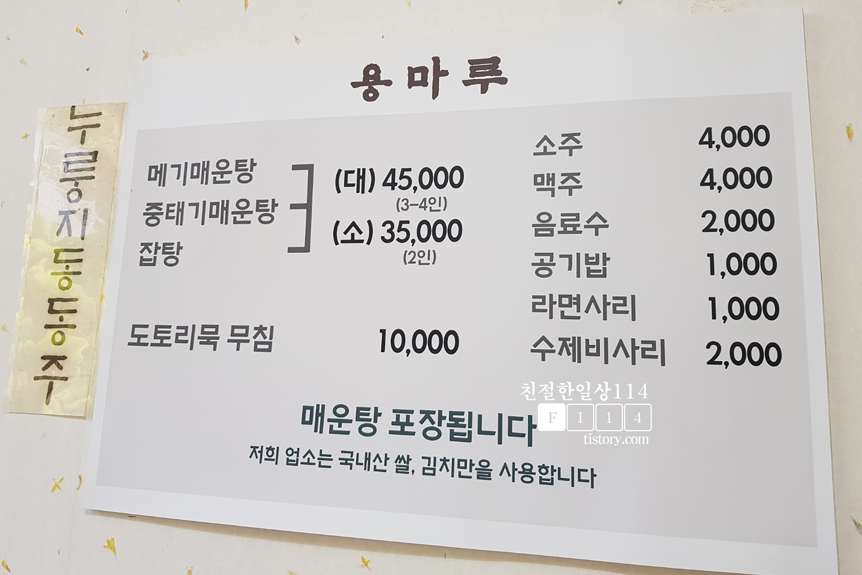 메뉴판에 있는 메뉴가 간촐하다. 맛집의 냄새가 나는 메뉴판이다.