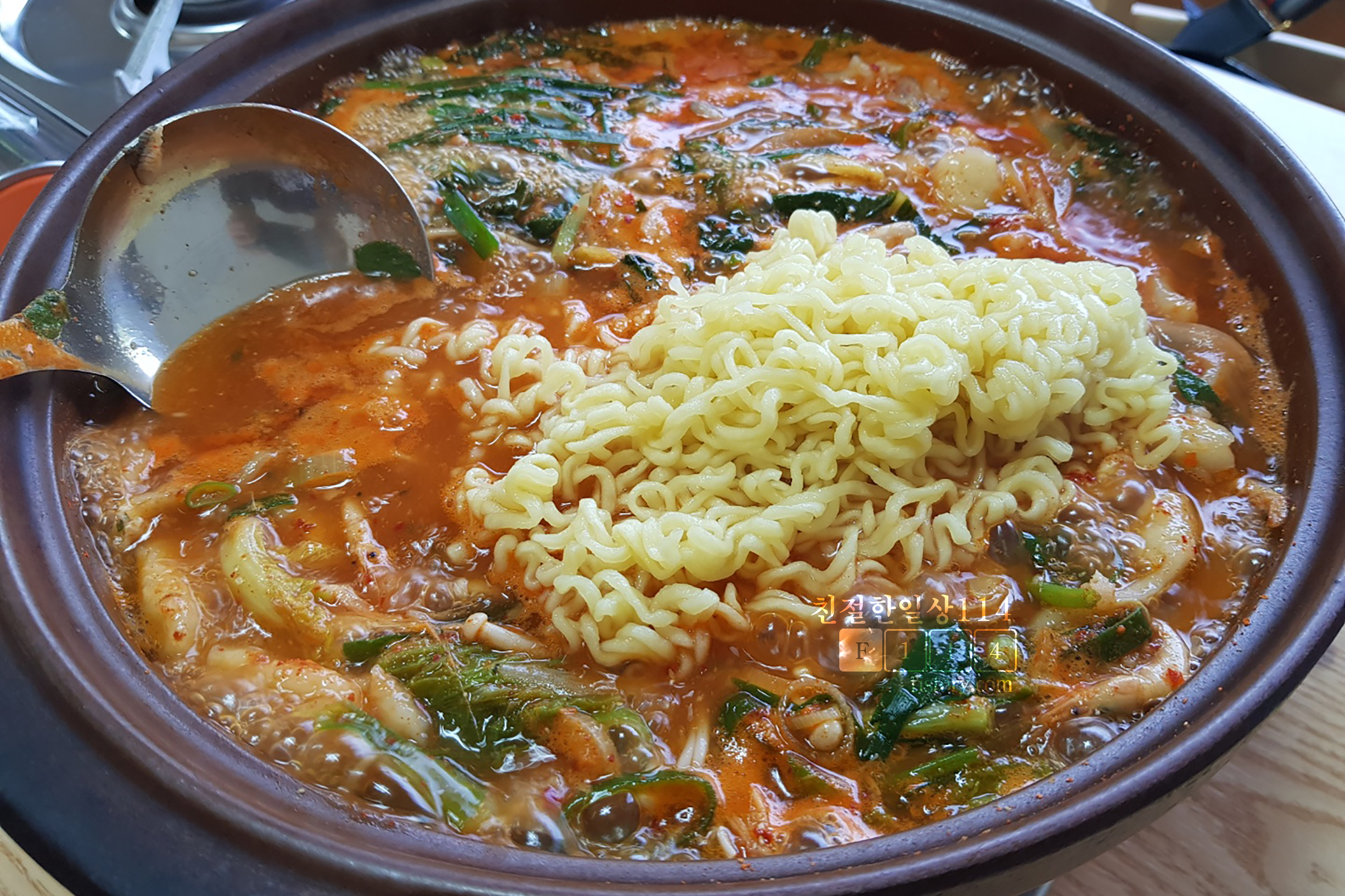추가 주문한 라면사리가 나온다. 라면사리는 익혀서 나오기 때문에 넣어서 한번 저은 뒤 바로 먹으면 된다.