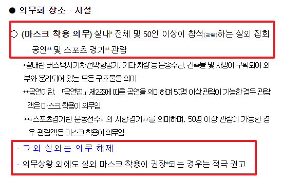 ㅣ실외 마스크 착용 의무 해제와 해제 제외 장소/시설