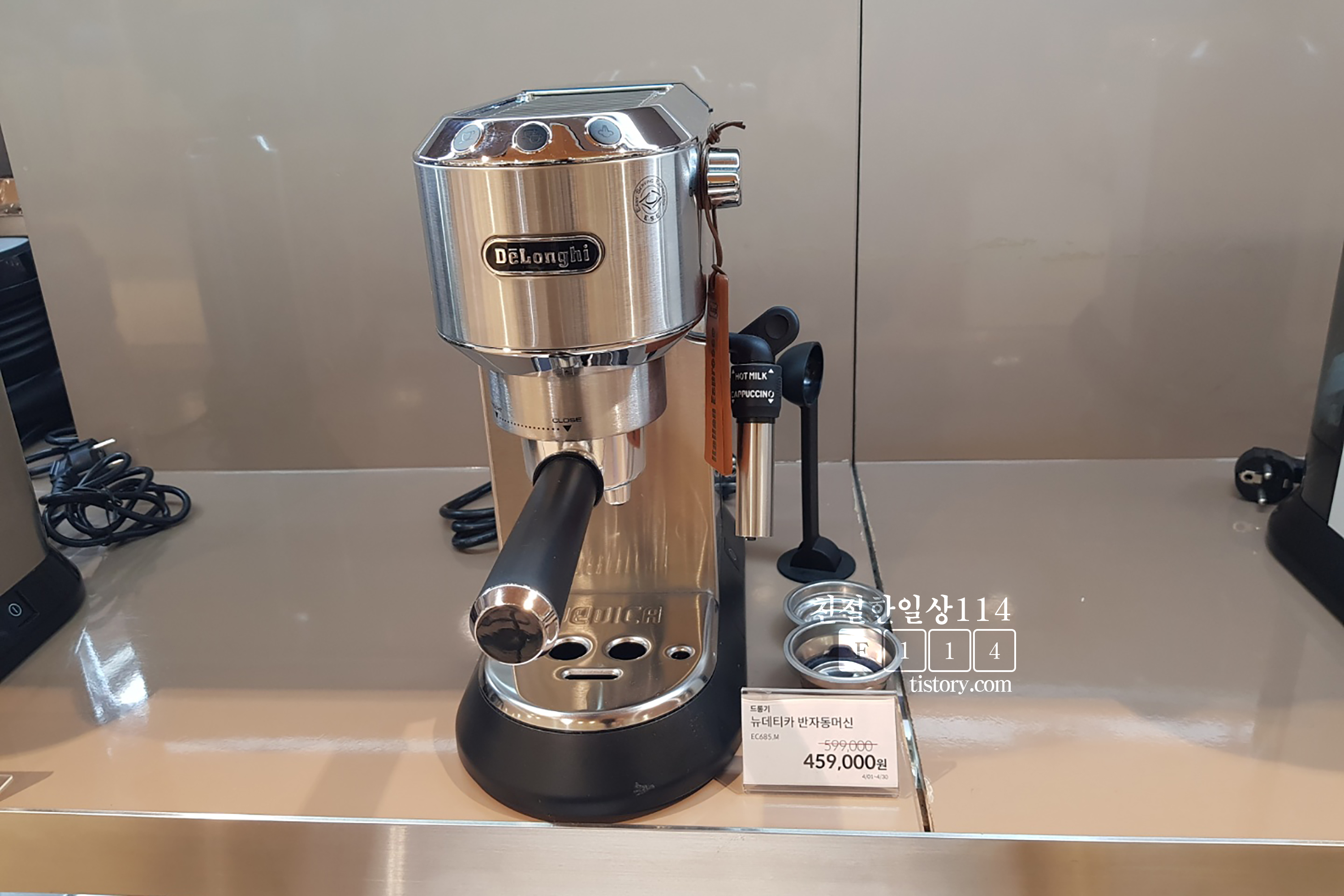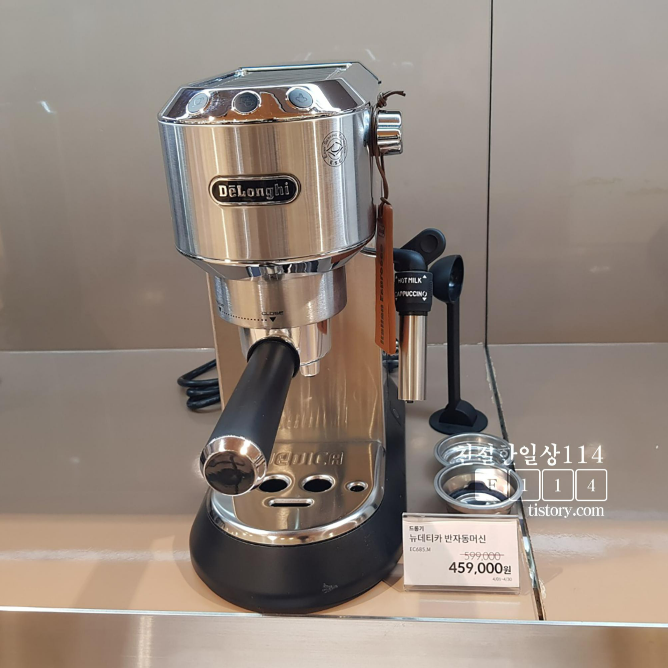 드롱기 뉴데티카 반자동머신 599,000원 -> 459,000원.