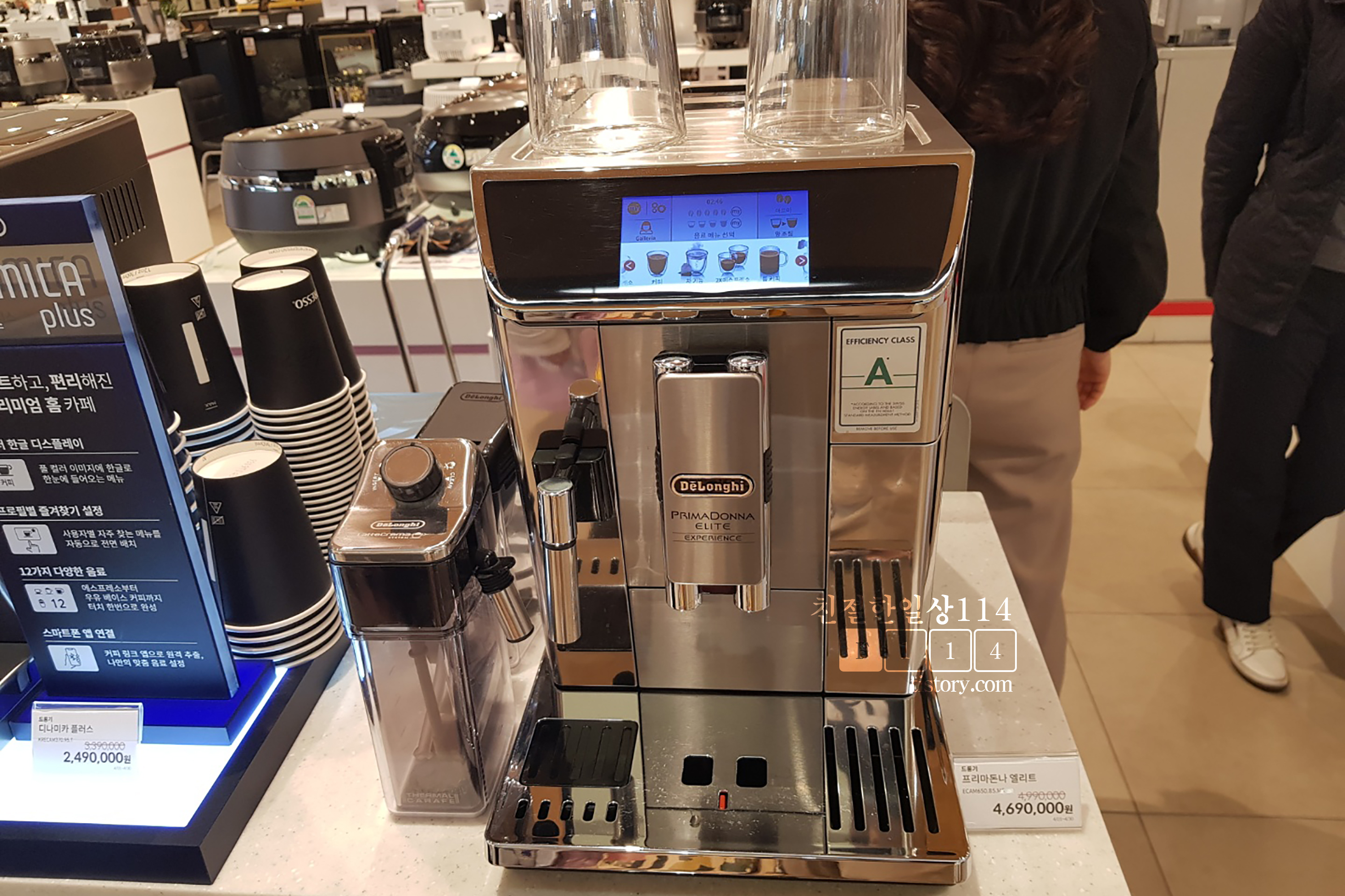 드롱기 프리마돈나 엘리트 4,690,000원. 이름을 특이하고 재밌게 지어져 있는 이 커피머신은 가격이 사악하다. 이건 커피머신은 일반 가정보다는 커피숍에서 사용하는 머신이다. 원래 가격 4,990,000원에서 30만원 세일중이니 사려면 지금이 적기인가?