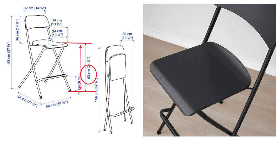 위 사진은 이케아의 프랑클린 의자로 해당 의자를 3개 구매했다. 이 의자의 장점으로는 접이식이라 사용하지 않을때는 공간을 차지하지 않게 보관할 수 있다는 점이다.