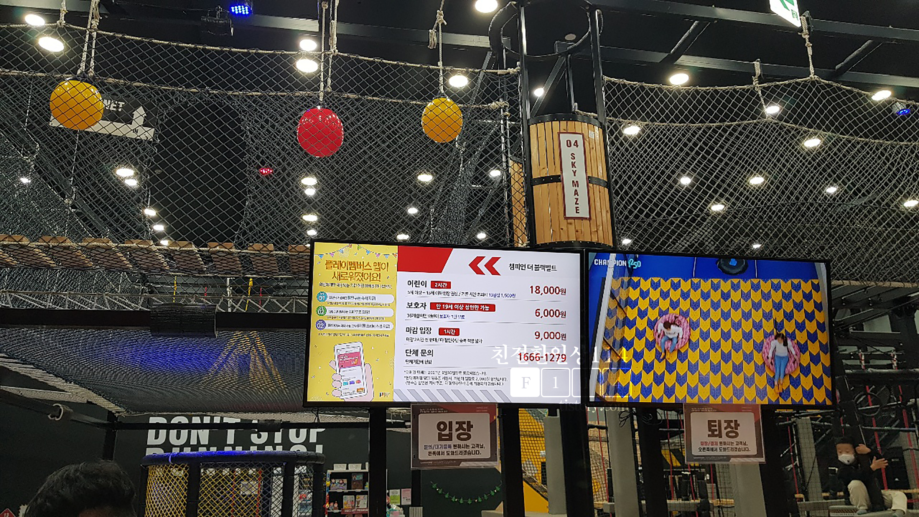 챔피언 키즈파크 이용시 주차장은 2시간 무료이다. 키즈파크 기본이용시간이 2시간인데 무료주차를 2시간으로 해놓은건 이상하다. 3시간으로 바뀌어야 하지 않을까 싶다.