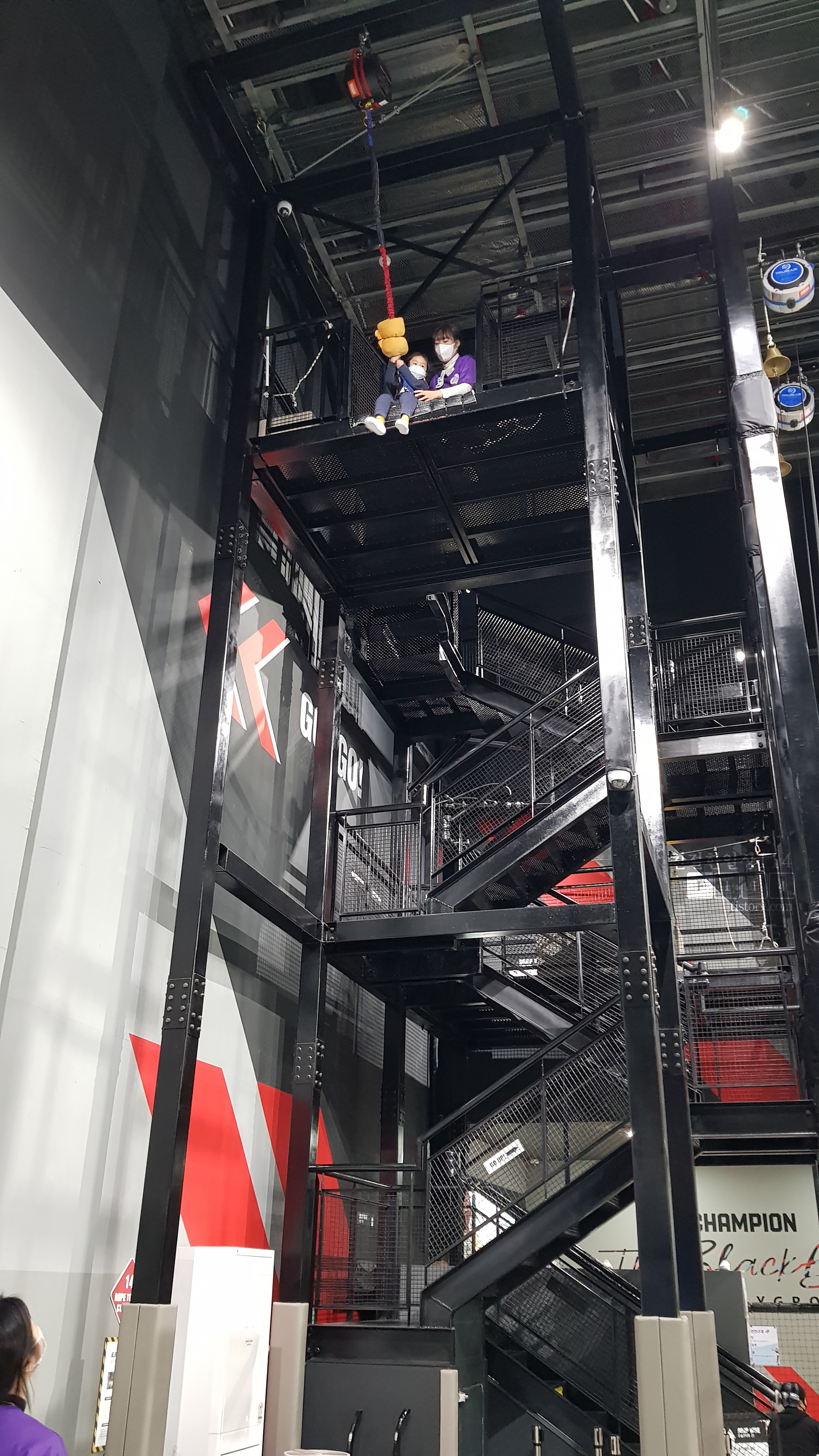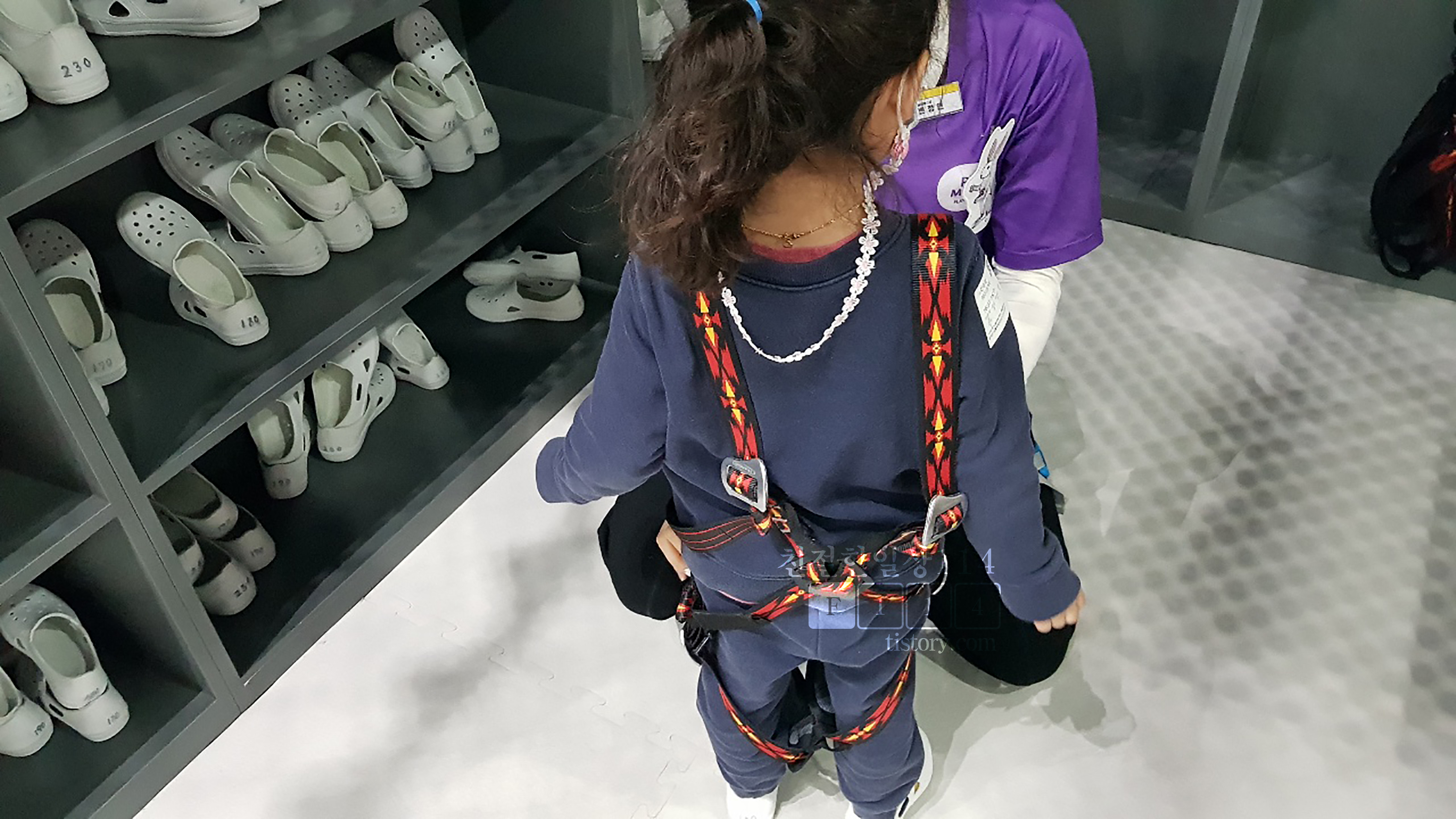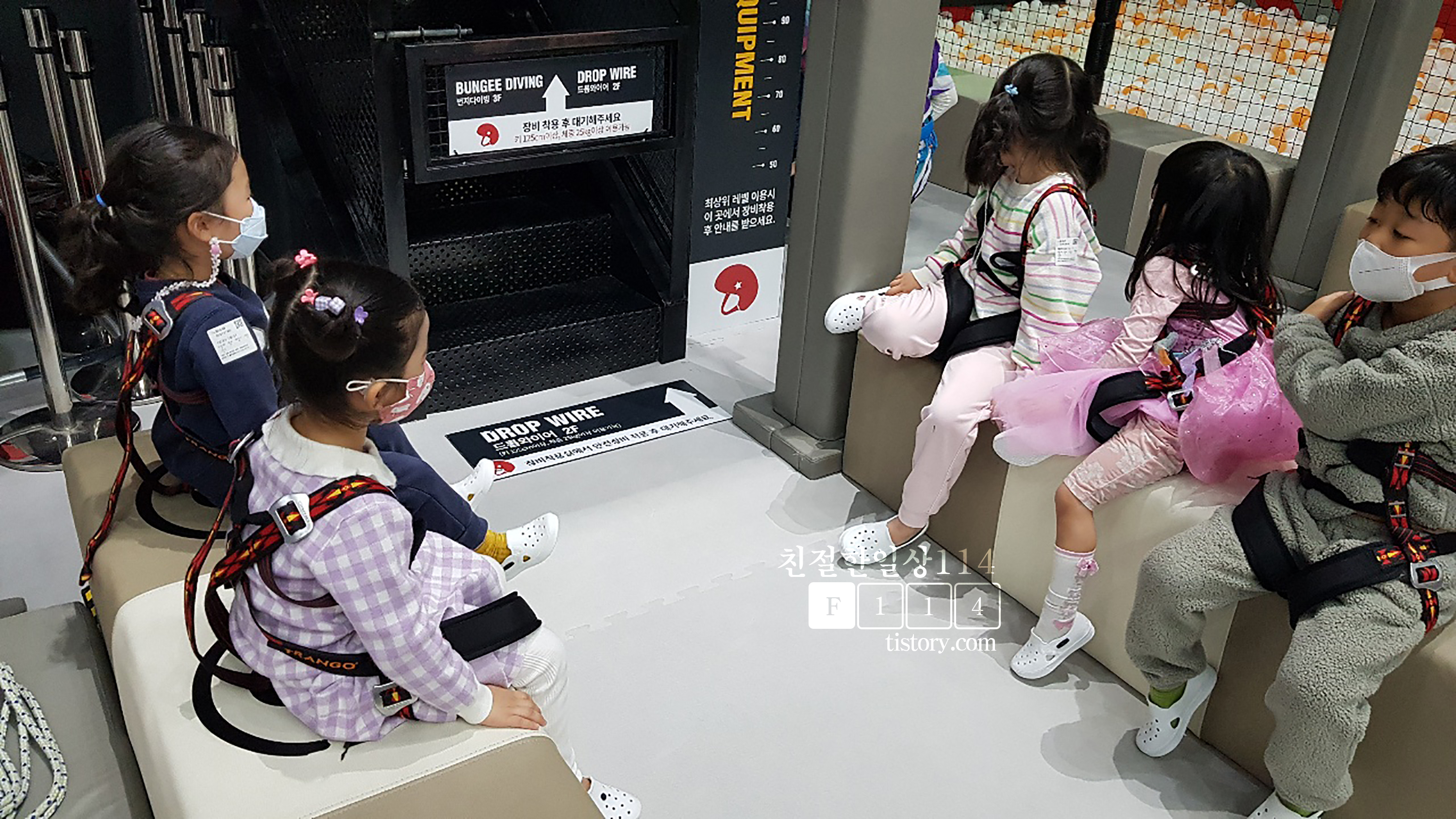 딸아이는 키가 110cm가 안돼서 드롭와이어(짚라인)와 번지다이빙은 이용 못 하는 줄 알았는데 제한없이 이용하도록 해주었다. 안전장비를 착용하고 선생님이라고 호칭하는 직원분들이 세심하게 봐주기 때문에 어느정도는 유연하게 봐주는것 같다.