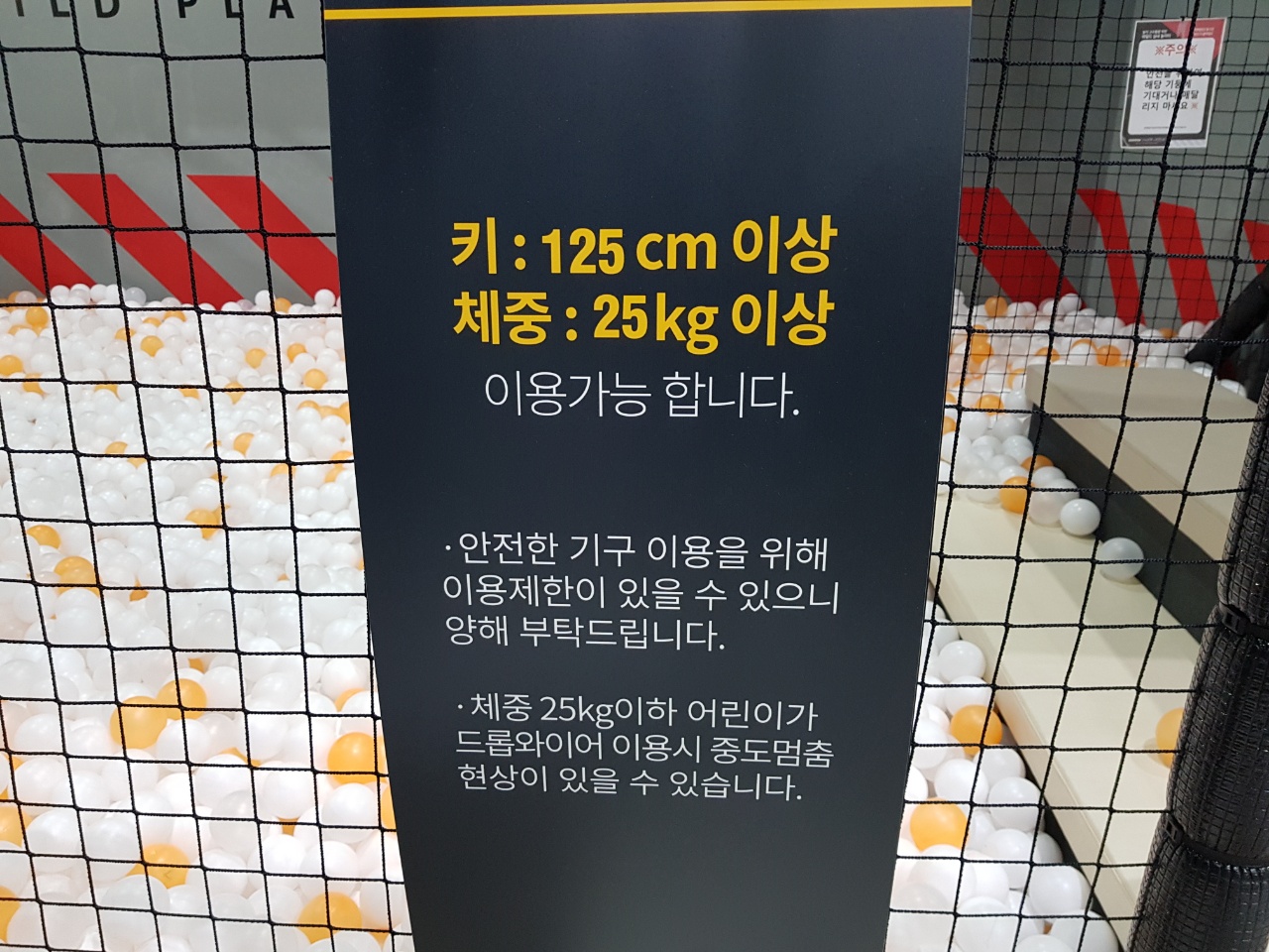 코로나 때문에 정기적인 소독과 방역을 하고 있다. 백화점에 입접한 키즈파크라서 그런지 더욱 철저히 관리하는 것 같다.