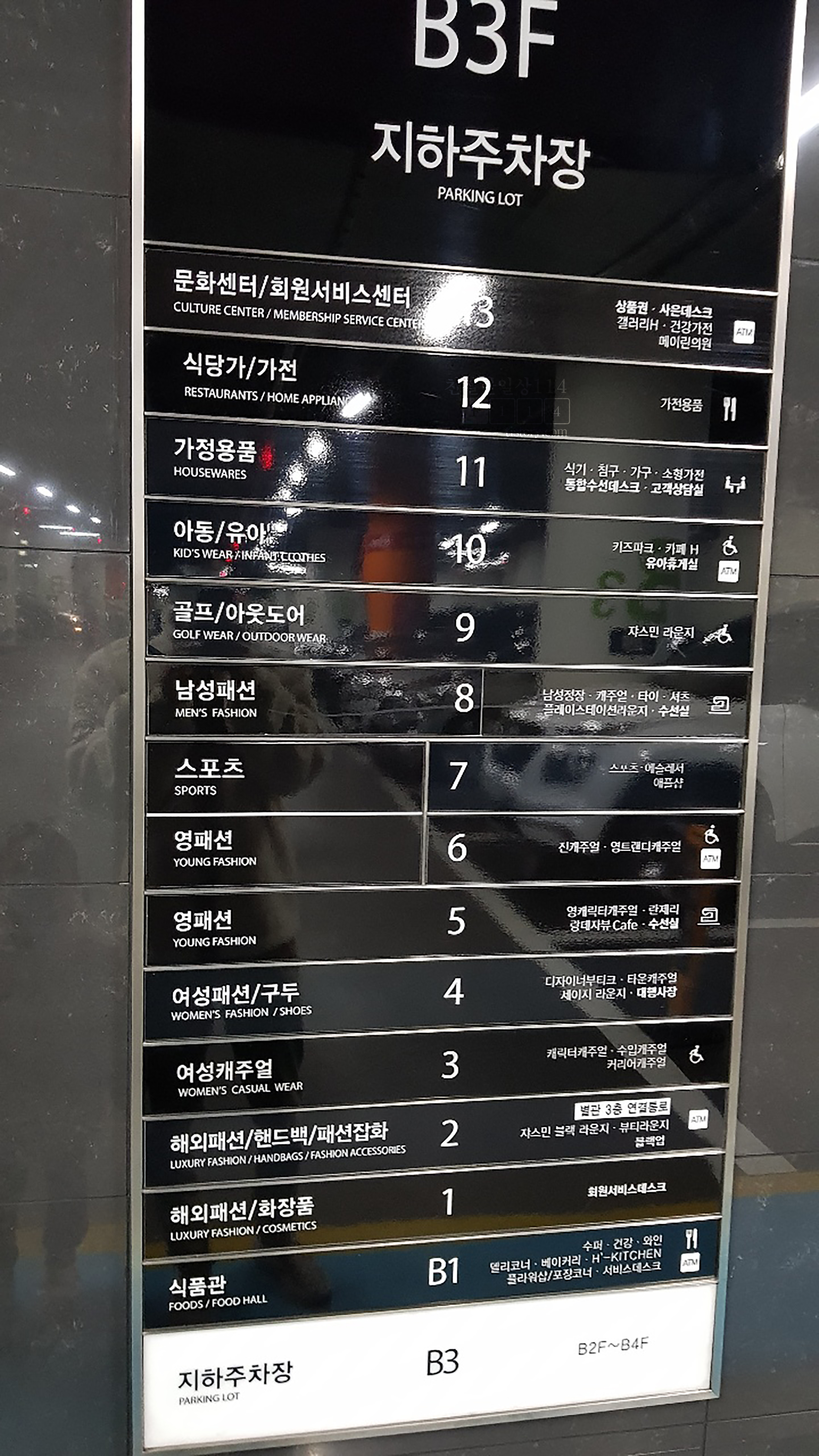 백화점 지하주차장에 주차를 하고 챔피언이 있는 백화점 유아동 용품이 있는 10층으로 올라간다.