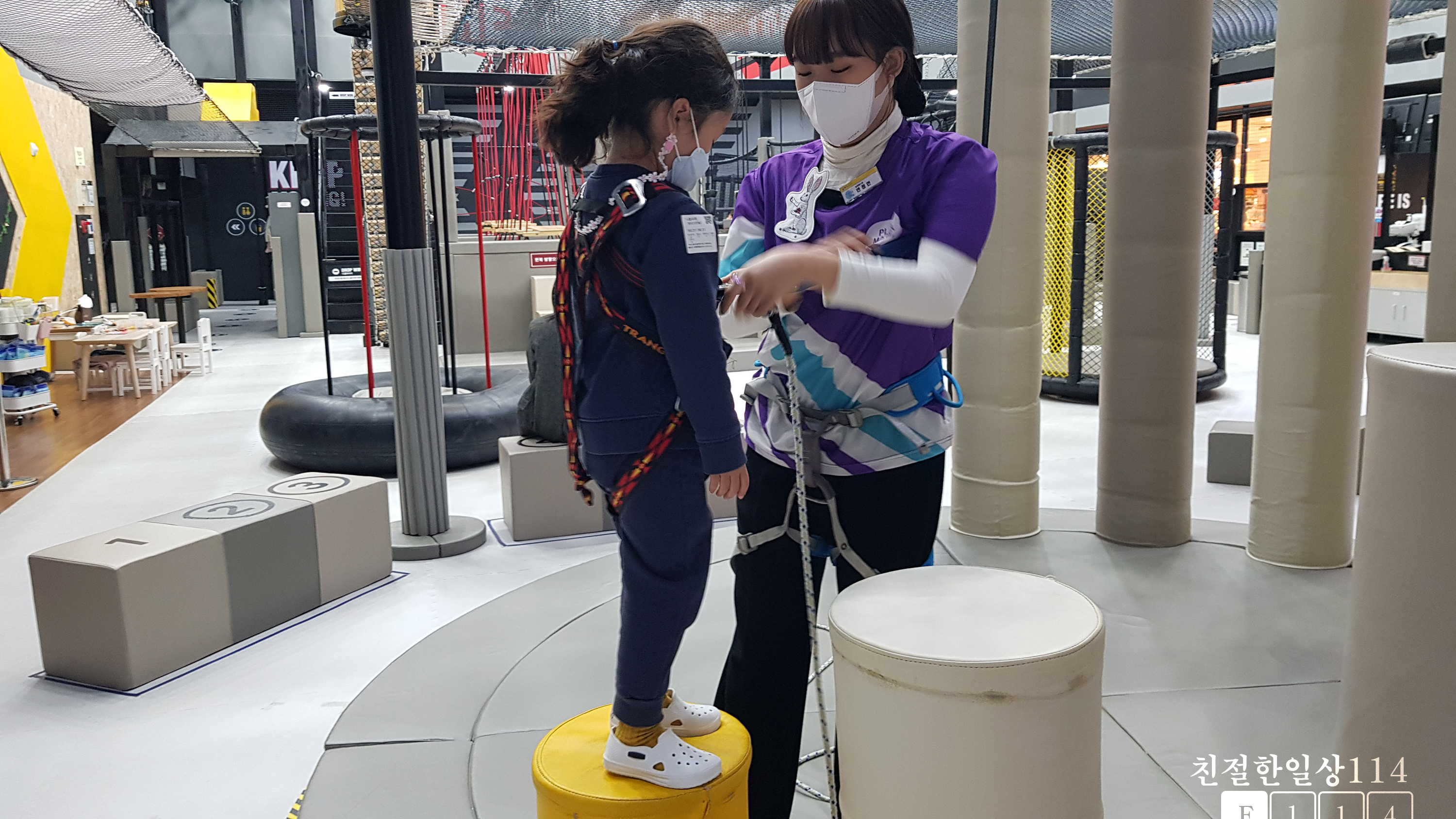 놀이시설중에서 안전장비가 필요하거나 이용방법을 모르는 경우에는 선생님을 부르면 도와준다. 직원들(선생님들)이 친절하고 아이들과 잘 놀아준다. 그래서 보호자들이 안심하고 아이만 입장시켜서 놀게 하는 것 같다.
