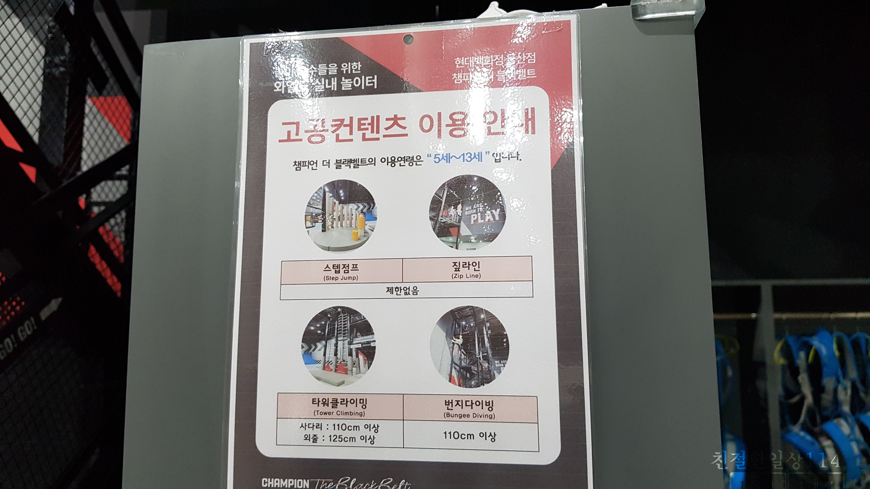 챔피언블랙벨트에서 즐길 수 있는 놀이시설은 총 17가지가 있다. 거의 대부분 몸을 움직이고 스릴을 즐길 수 있는 시설물들이다. 대표적인것 몇가지만 사진으로 남겨봤다.
