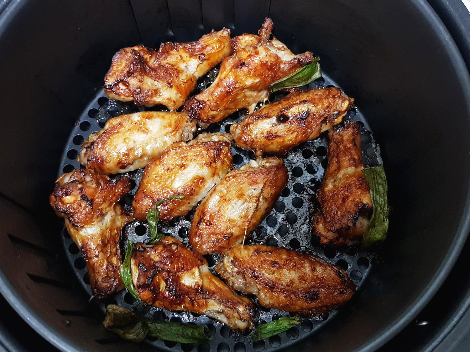 에어프라이어에서 막 구워진 윙/봉