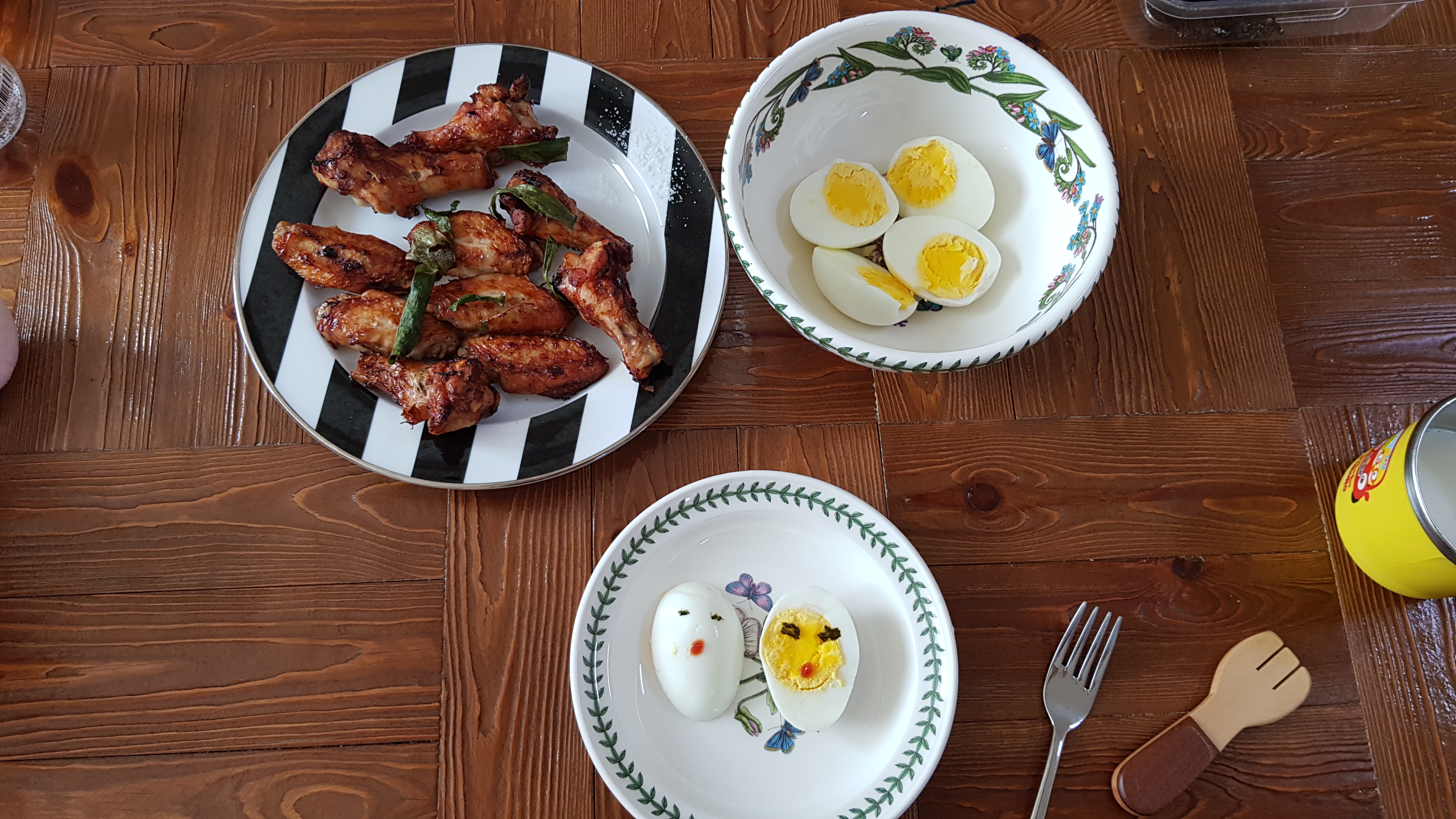 치킨윙과 봉을 구우면서 이렇게만 먹으면 심심할것 같아 계란을 삶았다. 삶은 계란도 초간단, 설거지도 없기에 간편함으로써는 윙과 매우 잘 어울린다.