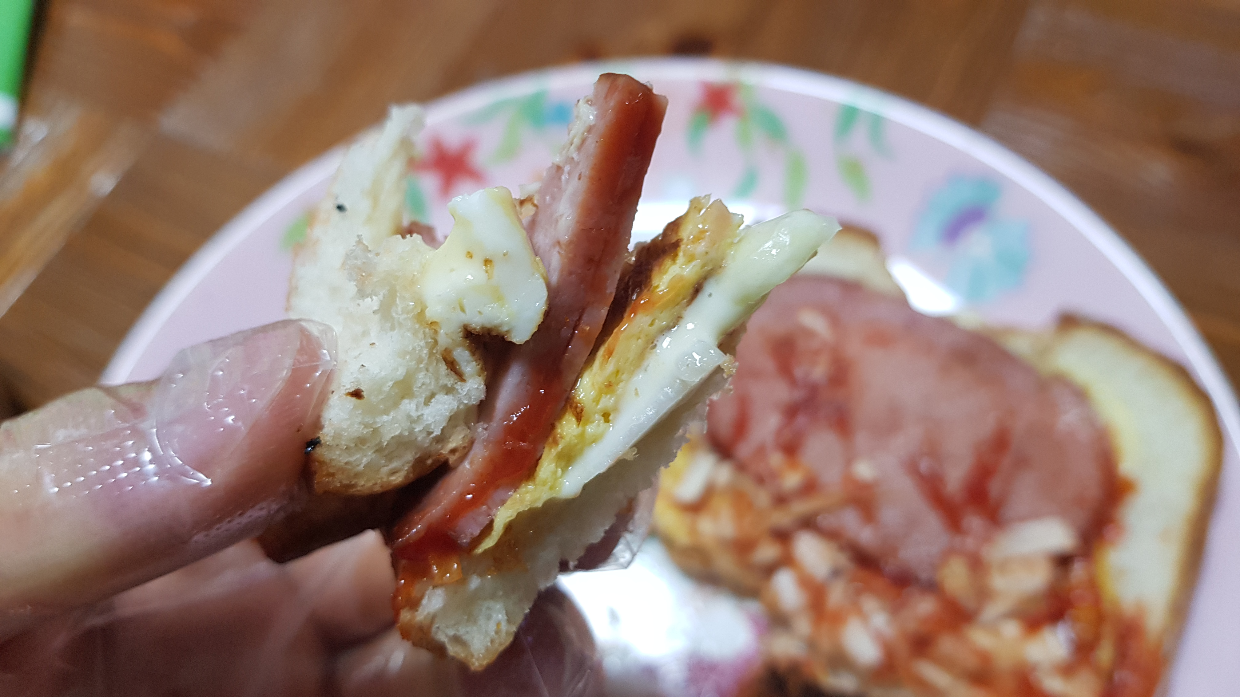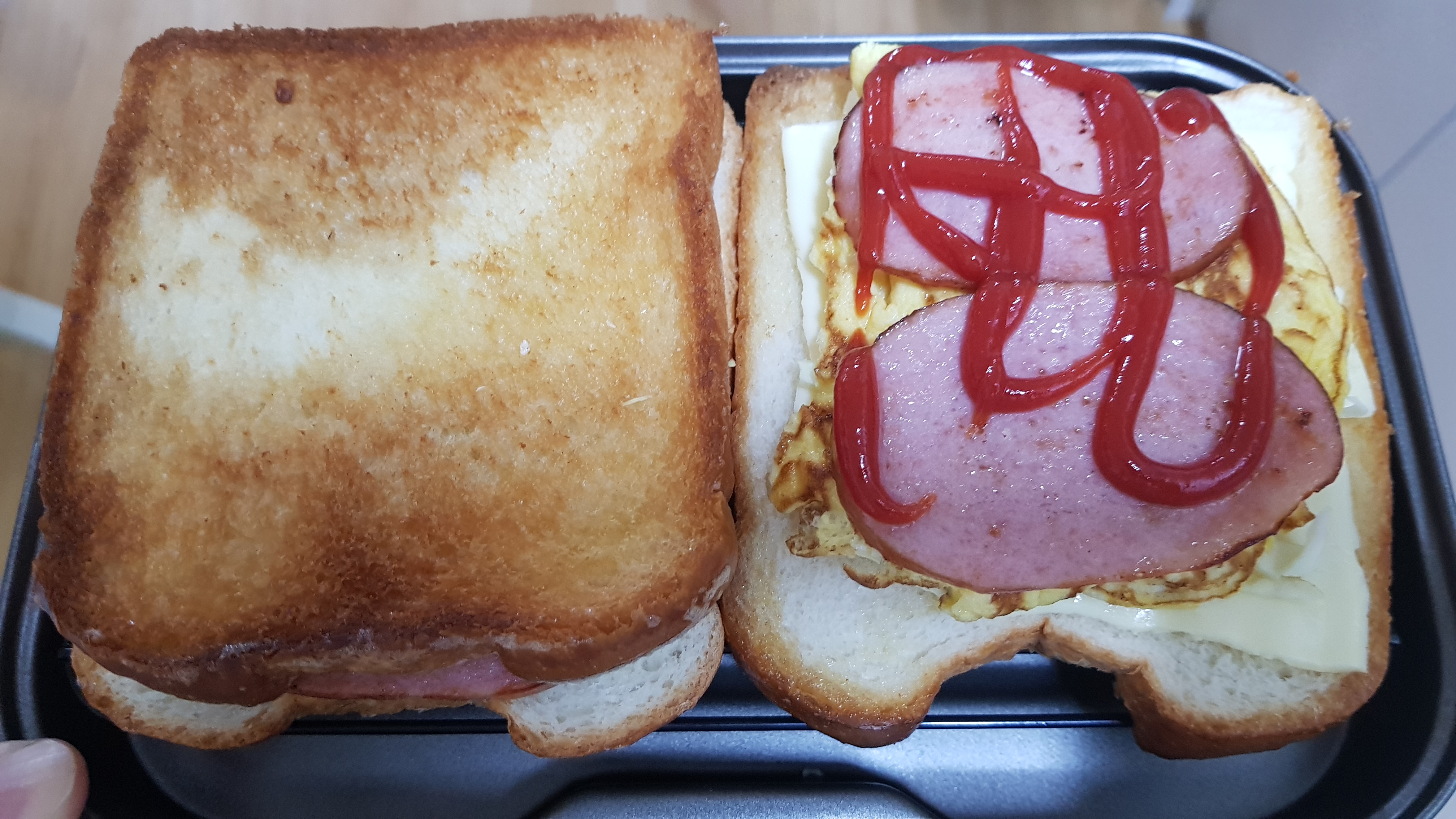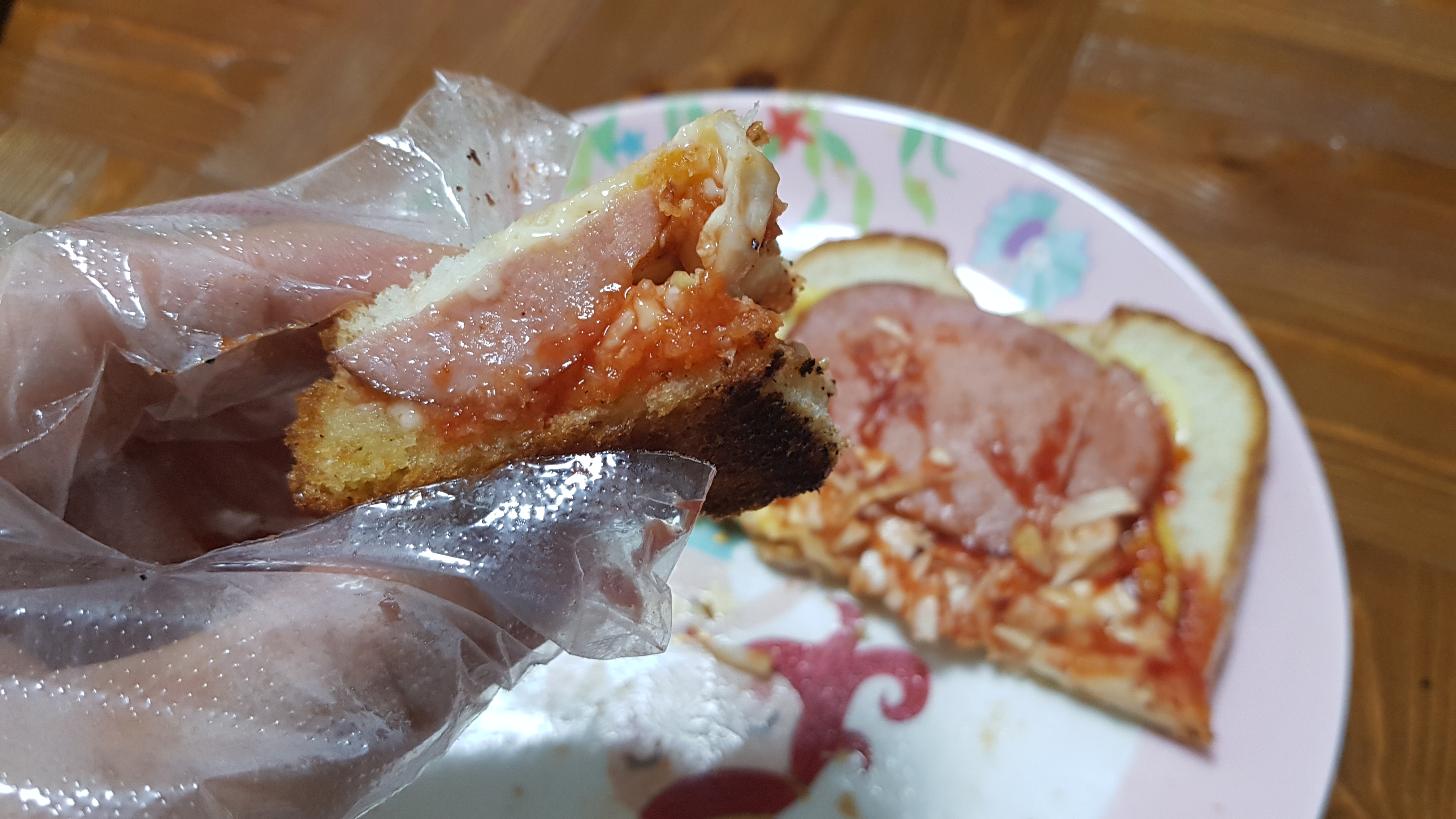 치즈는 잘 녹았지만 식빵의 겉부분이 타버렸다. ㅜ