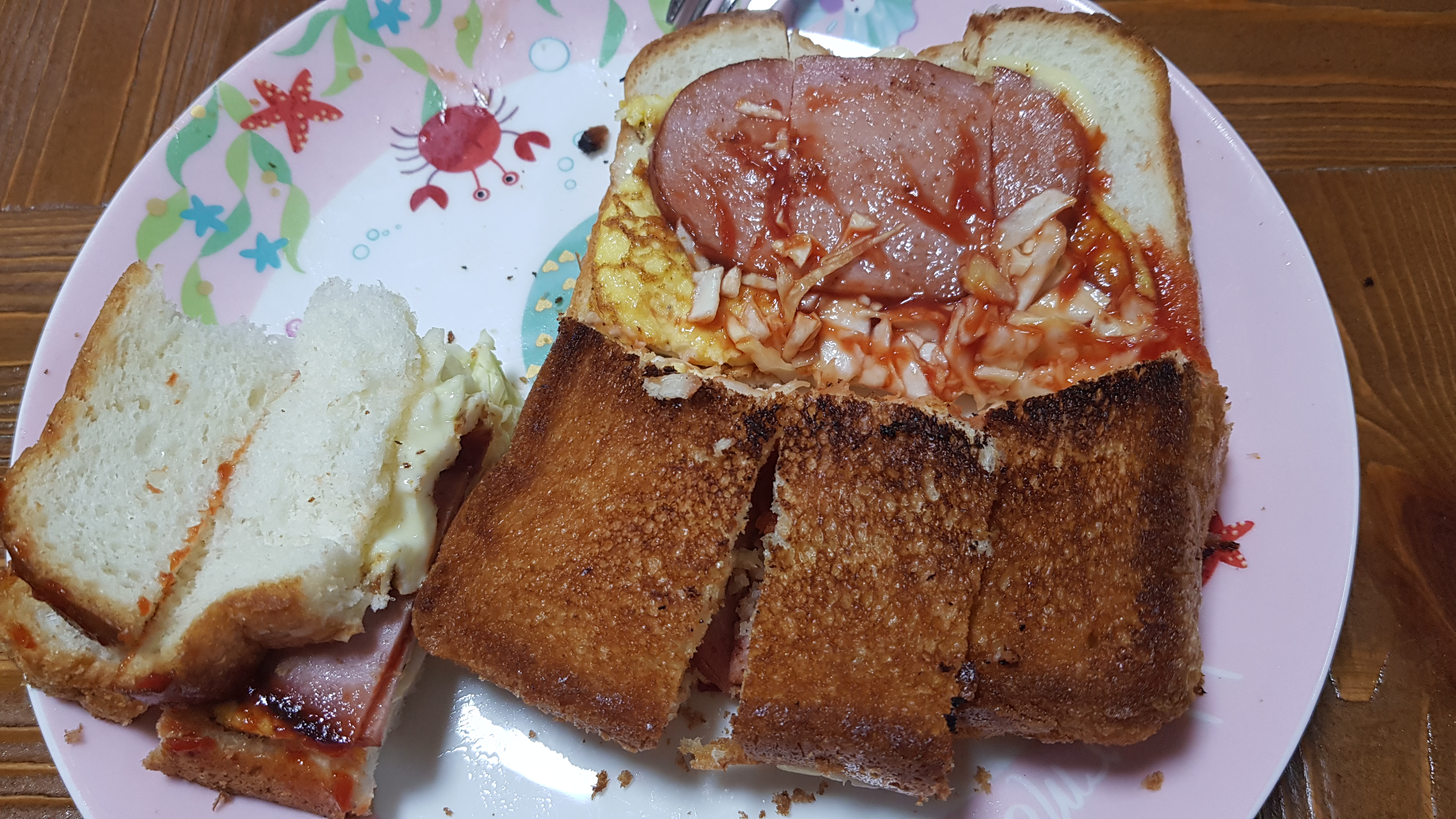 | 토스트 재료: 식빵, 햄, 계란, 치즈, 양배추, 버터, 식용유 요리시간: 20분 난이도: 별1 (별5 = 극강 난이도) |