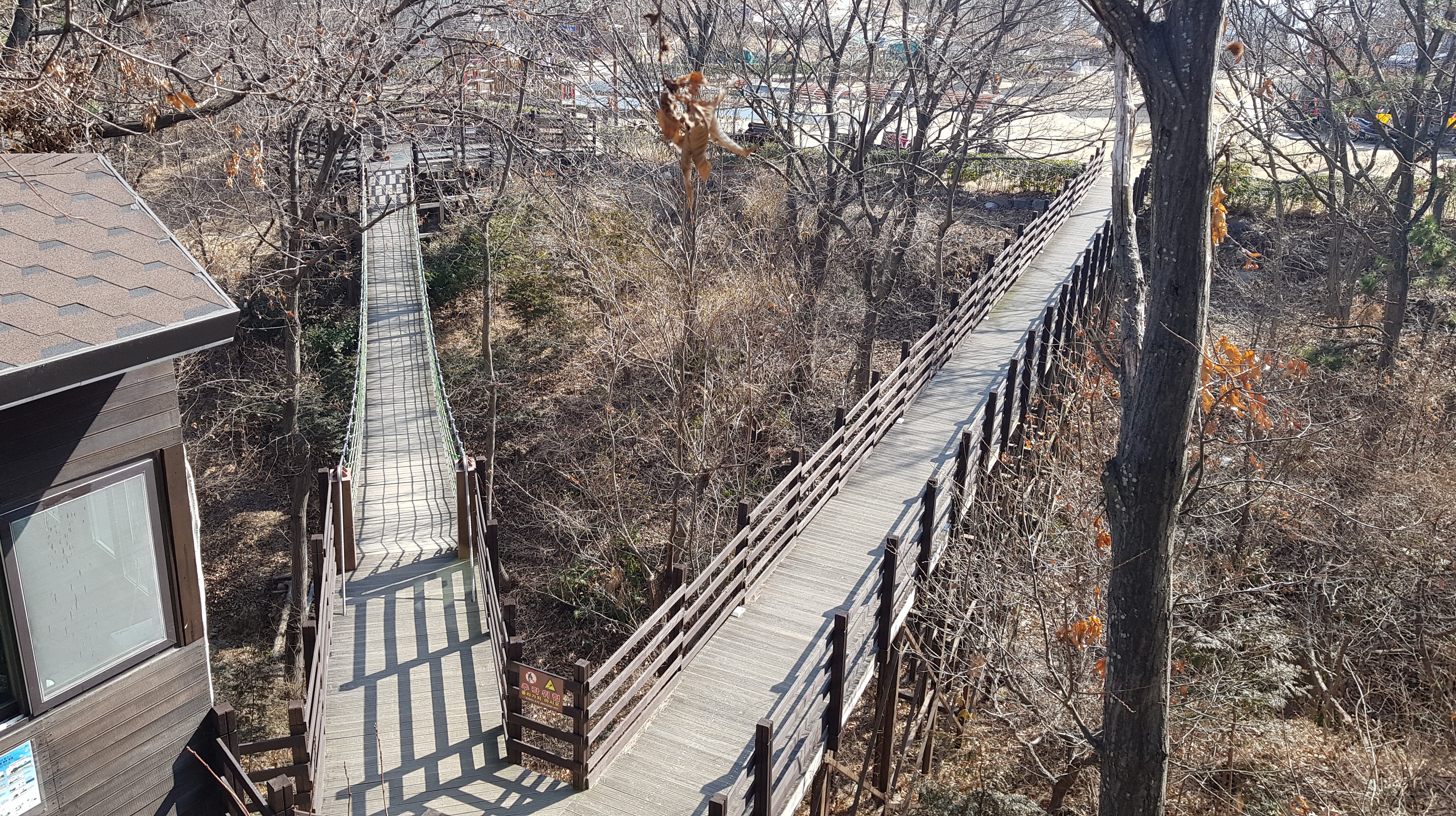 놀이터에서 파고라가 있는 쪽에 보면 나무로된 다리가 있다.