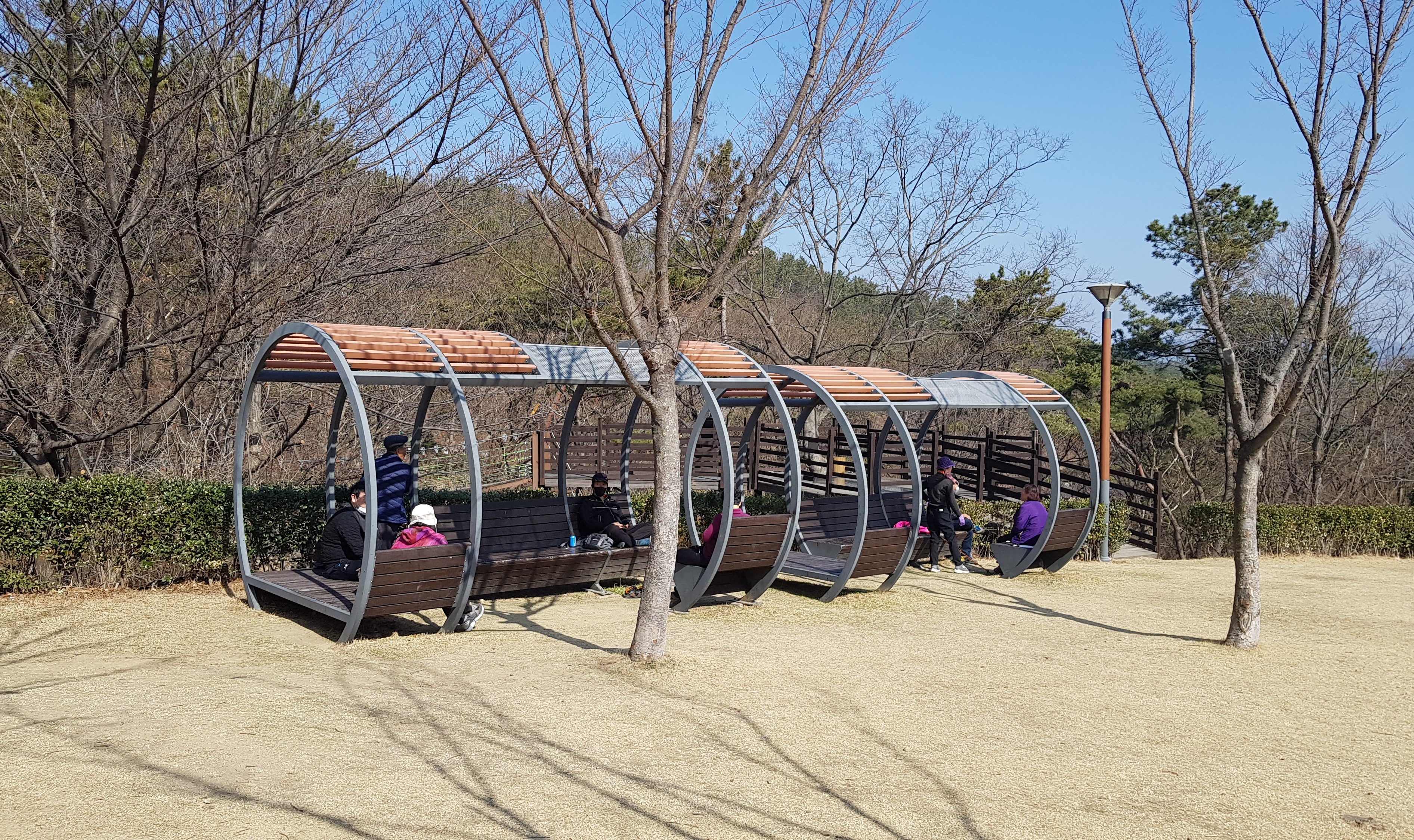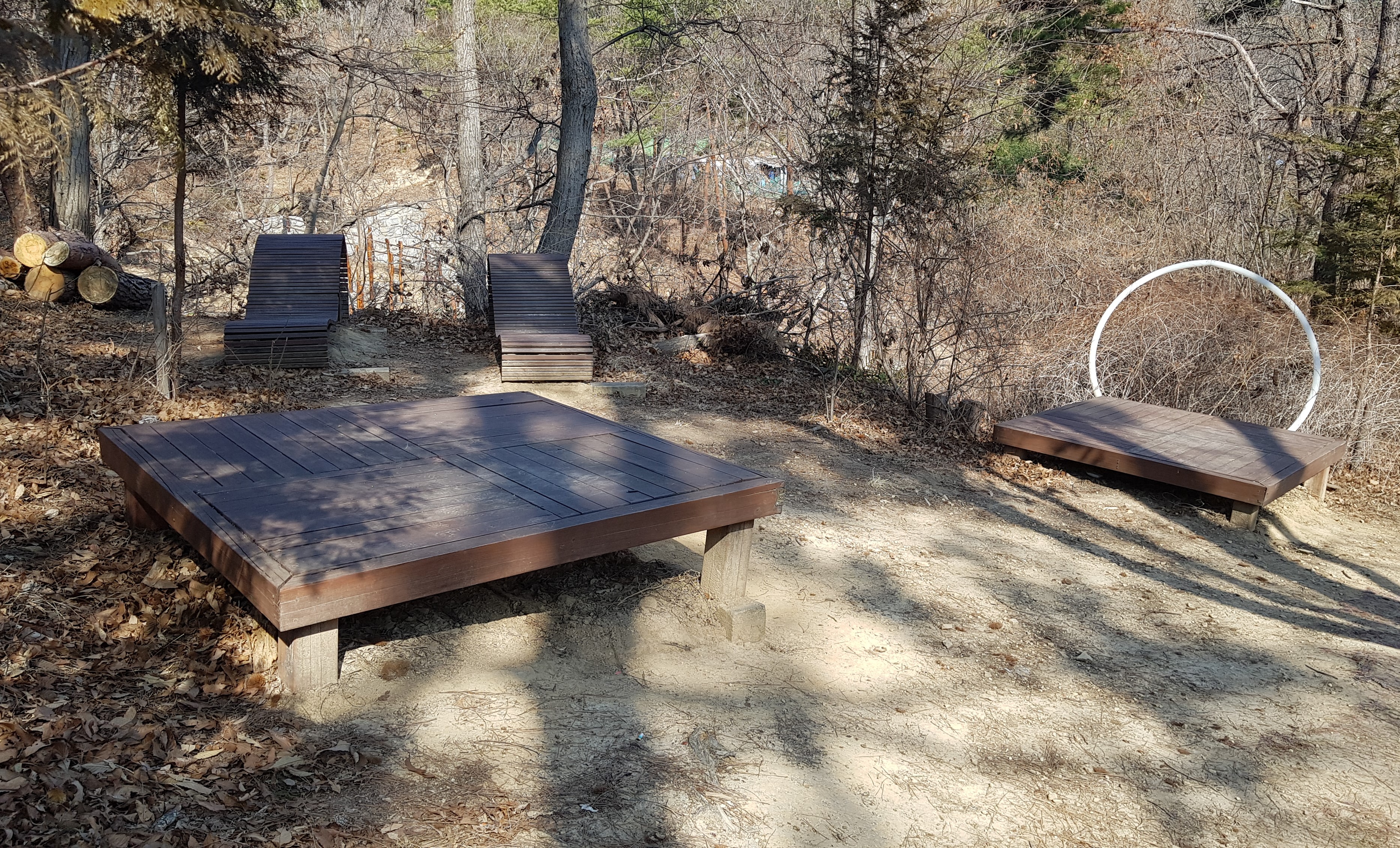 유아숲 체험원 입구를 지나 길을 따라 조금더 내려가면 나무그늘 밑에 마련된 평상과 누울 수 있는 의자가 있다.