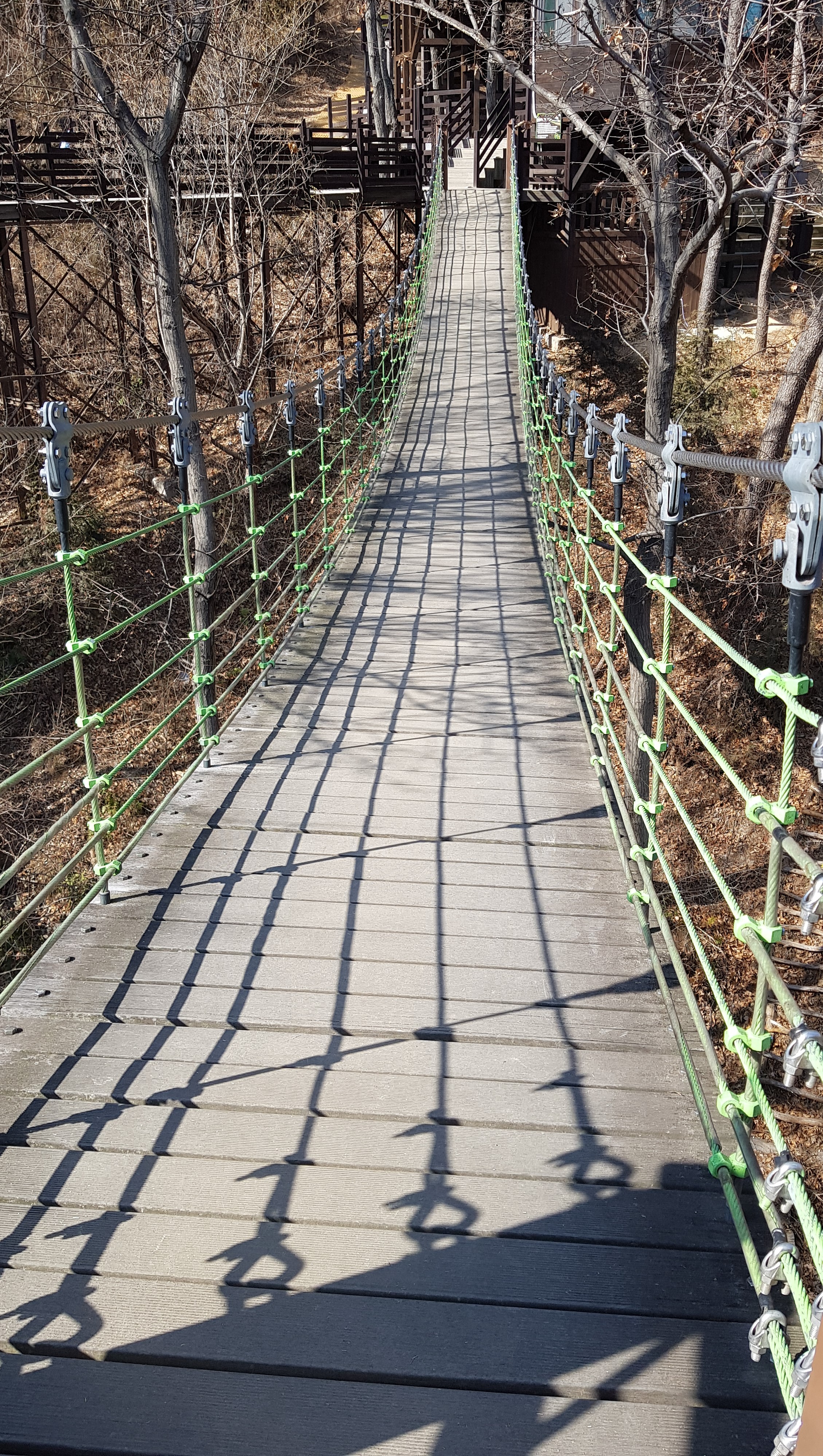 묵직하며 같이 건너도 많이 흔들리지 않는다. 아이들도 무서워하지 않고 안전하고 재밌게 다닐 수 있록 만들어진거 같다.