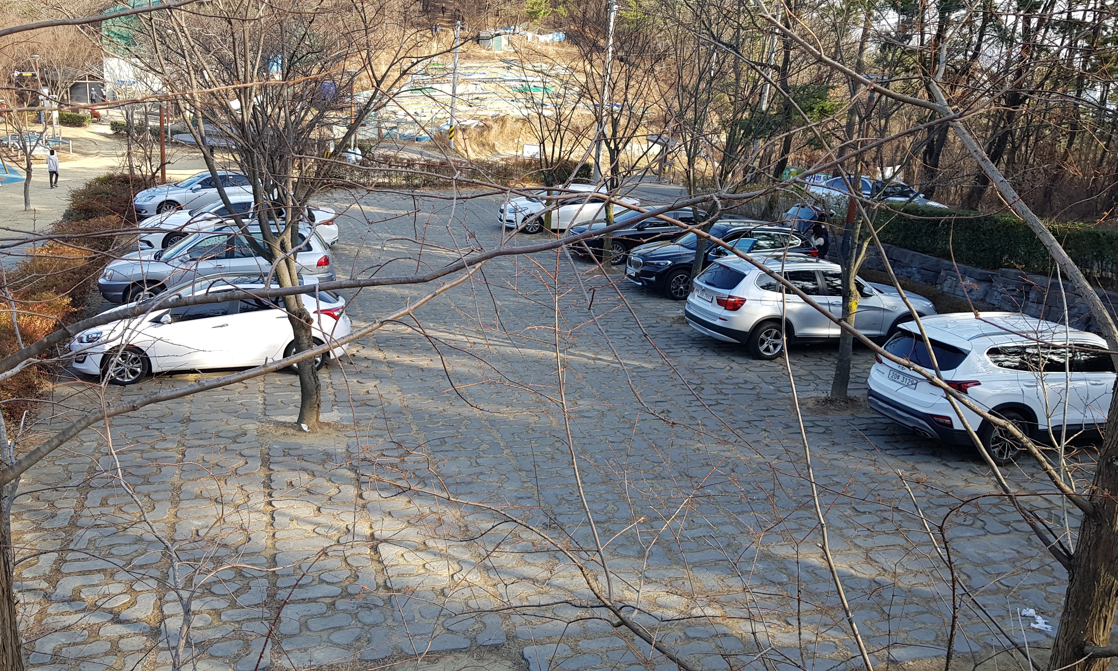 체육시설을 지나면 바로 주차장이 나오고 아래쪽에 나있는 계단으로 치유의 숲 놀이터로 연결된다.