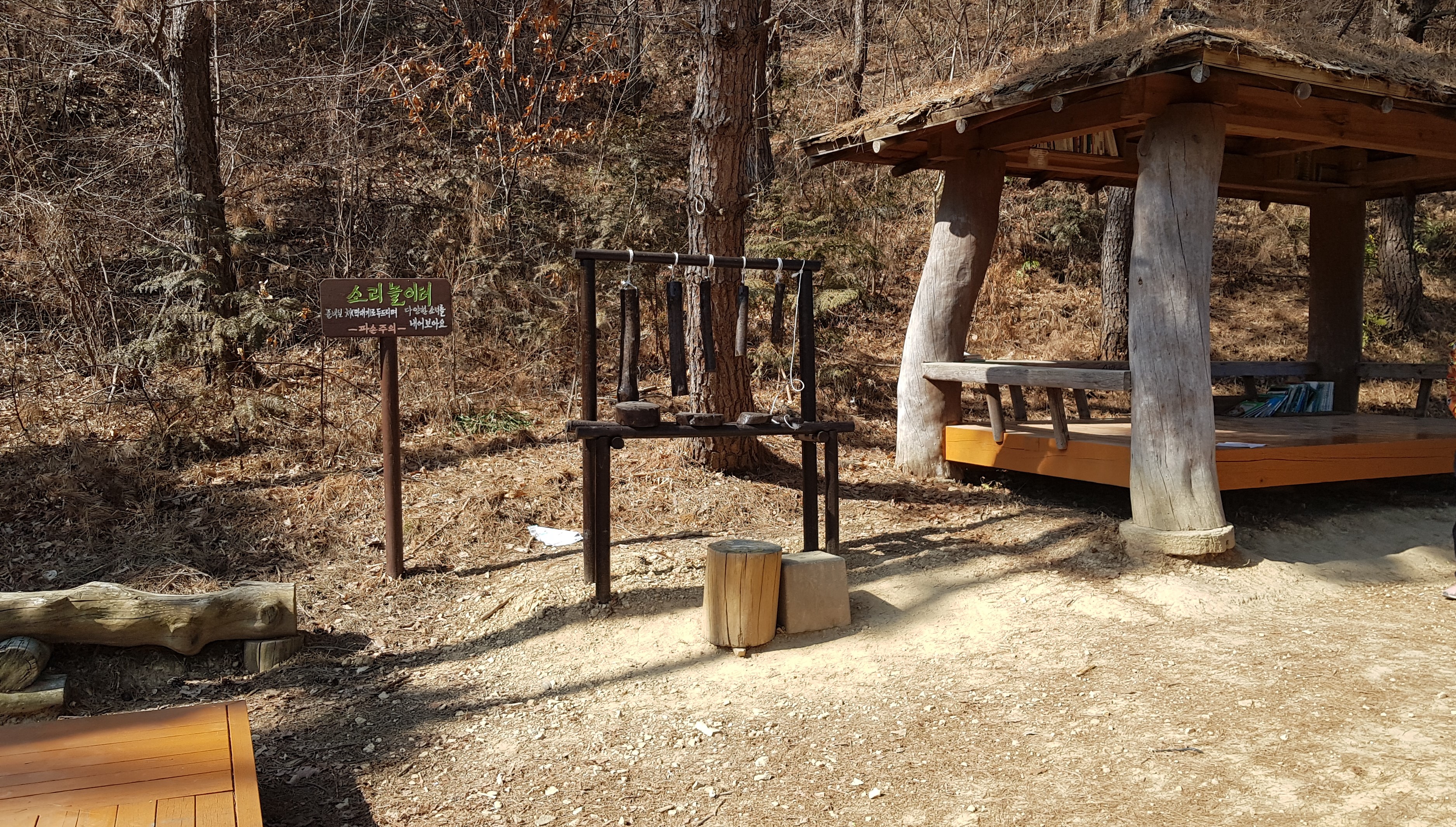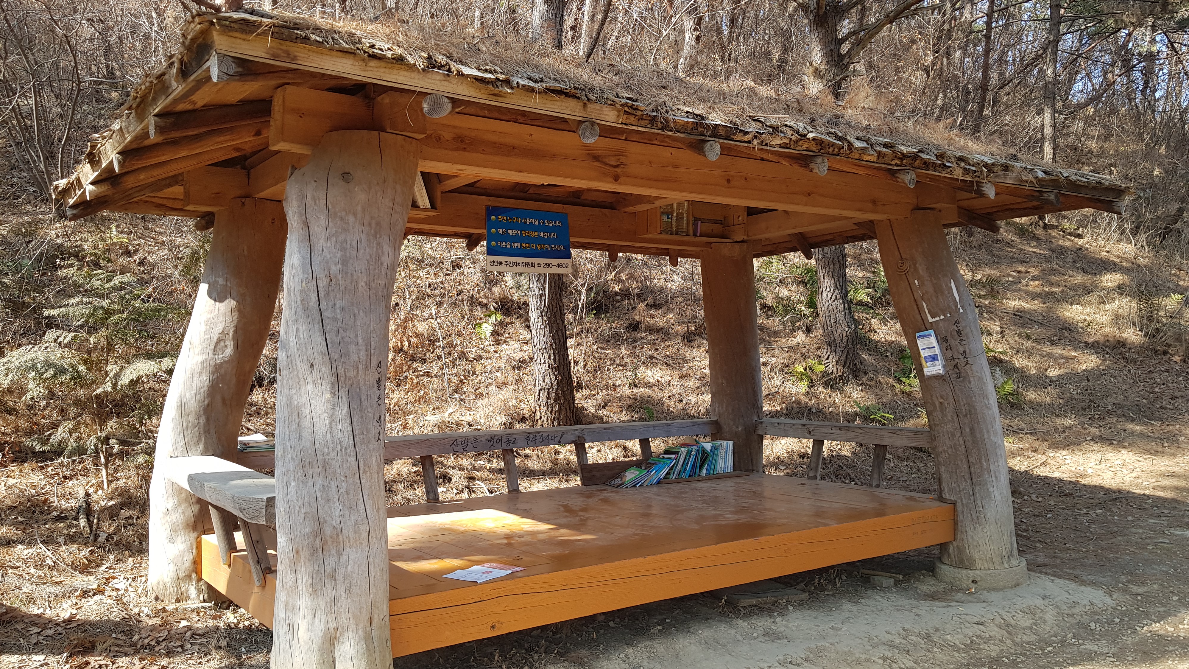 오두막 전망대에서 위쪽으로 나있는 길로 조금만 걸어올라가면 책이 마련되어있는 원두막과 소리놀이터가 나온다.