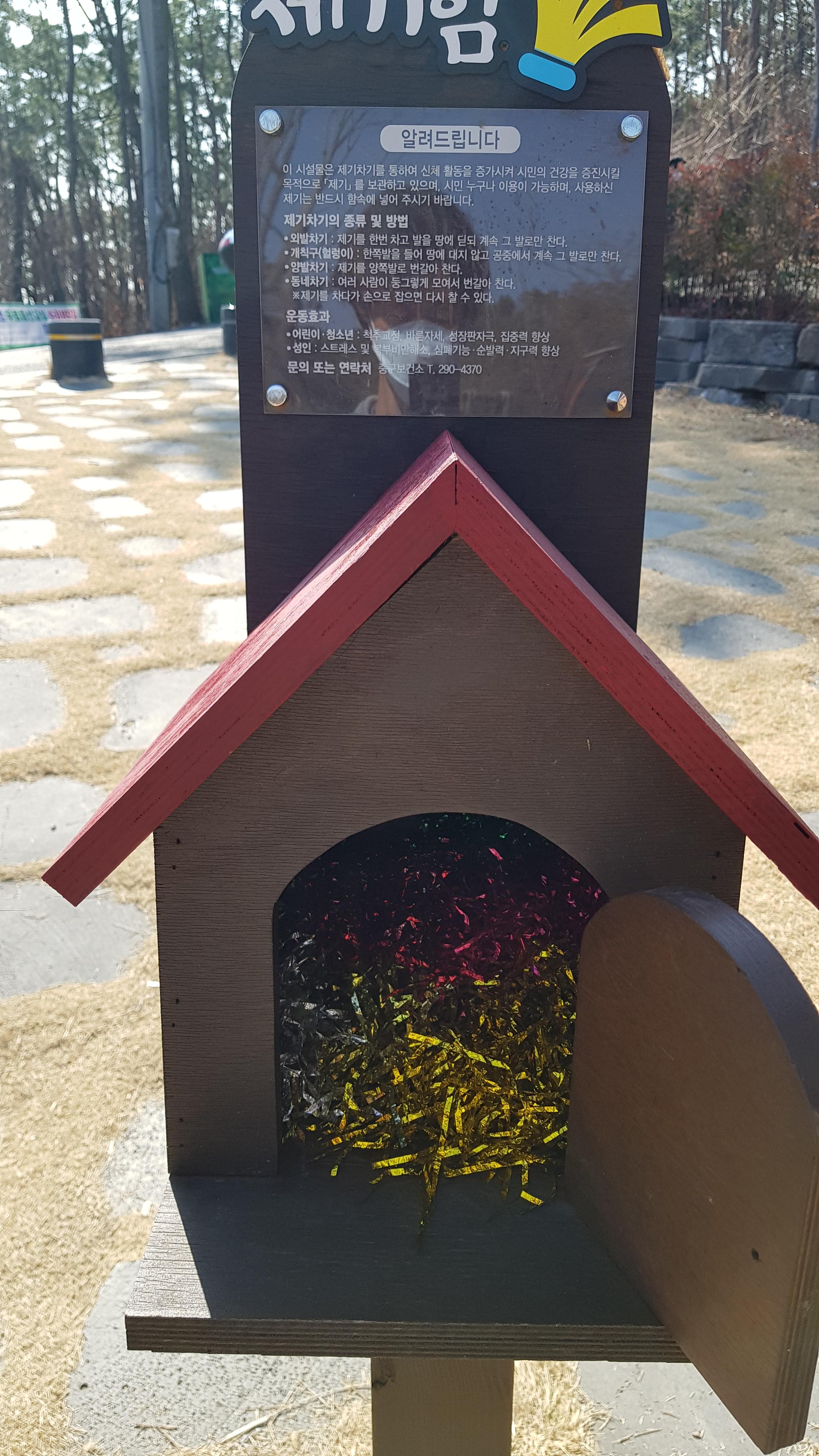 제기함 문을 열어보면 제기가 들어있고 누구나 사용가능하다.