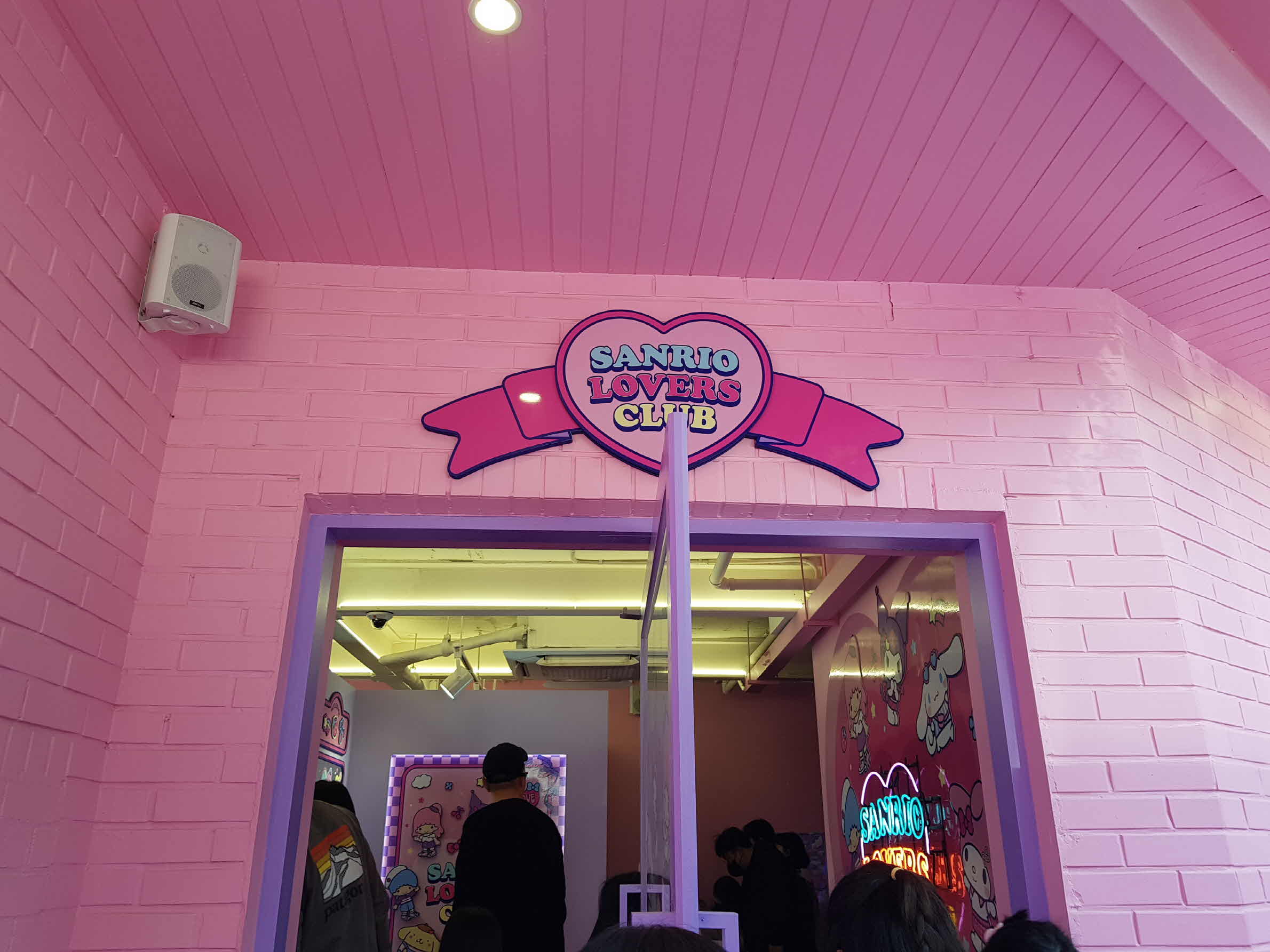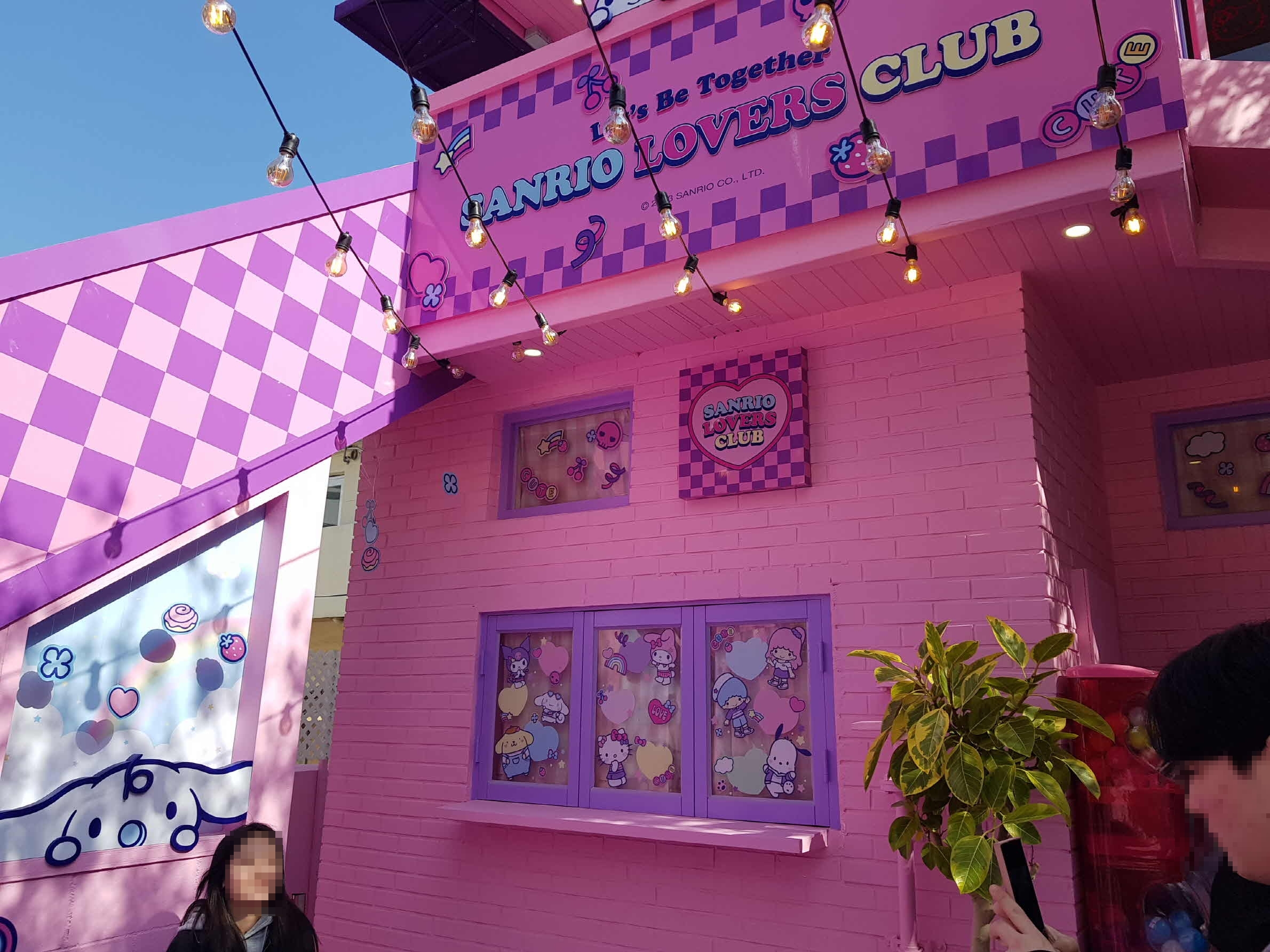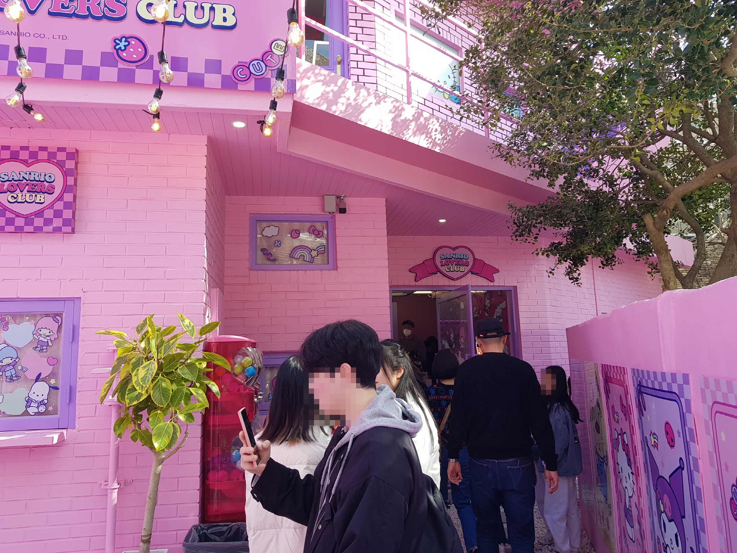 주차를 하고 산리오 러버스 클럽을 찾아 걸었다. 도로 안쪽으로 눈에 확 띄는 핑크색 건물이 보이고 사람들이 많이 몰려있는 모습도 보인다.