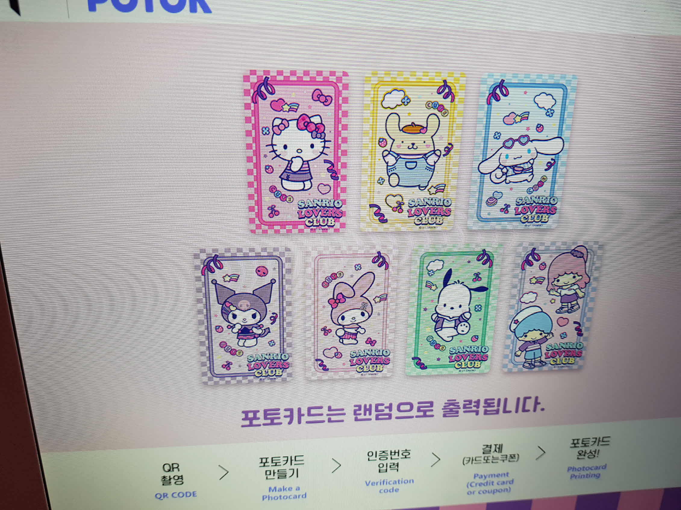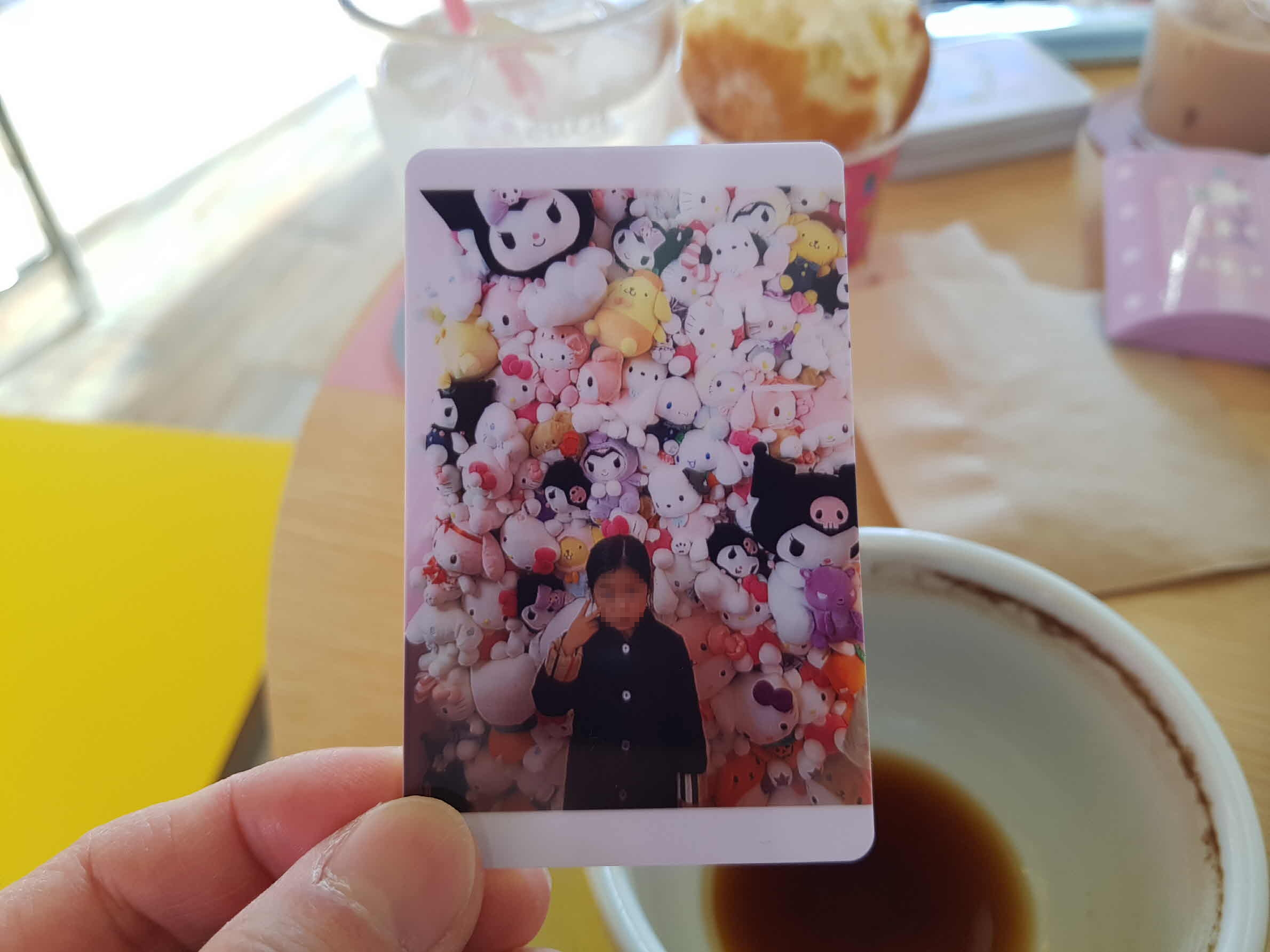 산리오 포토카드 만들기. 가격은 3000원이며 한쪽면에는 산리오 캐럭터가 프린트되고 반대쪽에는 내가 찍은 사진을 넣을 수 있다.
