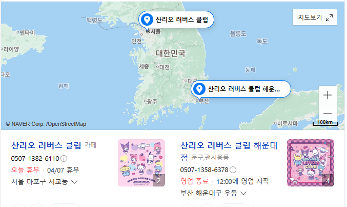 산리오 클럽 매장은 우리나라에 서울과 부산 이렇게 2곳 뿐이다.
