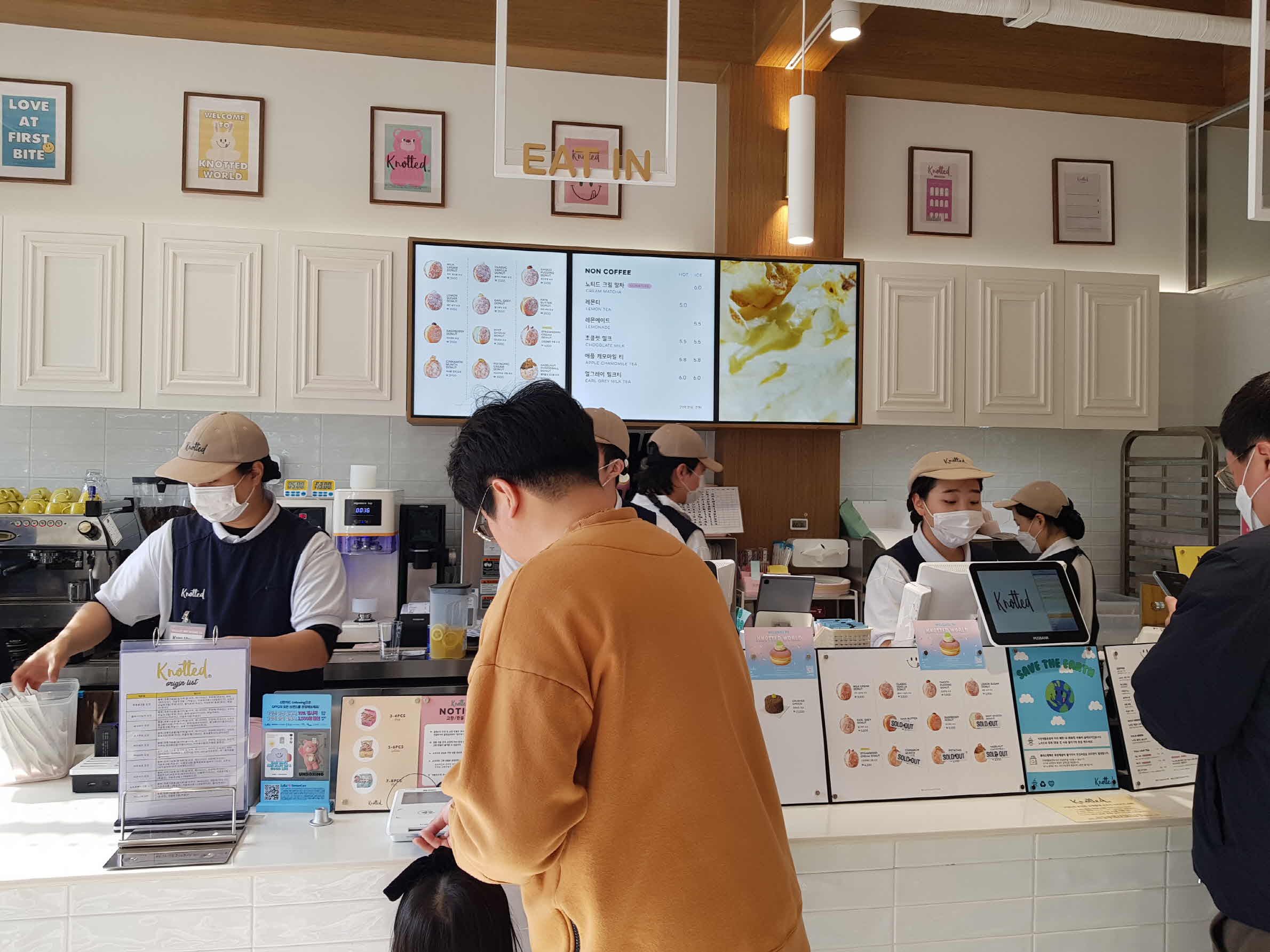산리에 러버스 클럽에서 너무 많은 사람에 치였다가 나온 뒤라 노티드 도넛 가게도 워낙 유명해 사람이 많지 않을까 걱정을 하며 발걸음을 옮겼다. 매장에 들려보니 주문을 하기 위해 줄지어 서 있었지만 생각보다 줄이 금방 줄어들었다. 5분 정도분정도 기다려 주문을 한 뒤 매장 테이블자리도 어렵지 않게 빈자리를 찾아 도넛을 커피와 같이 맛있게 먹고 나올 수 있었다.