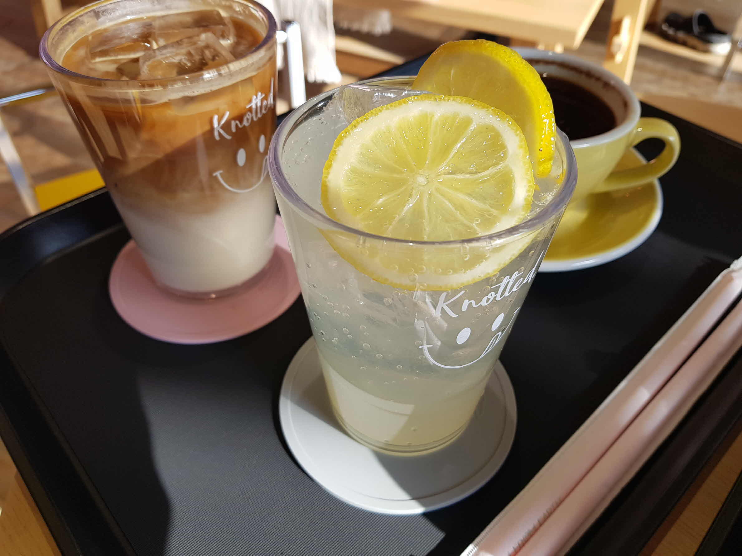 음료는 노티드의 스마일이 그려진 컵에 담겨 나온다.