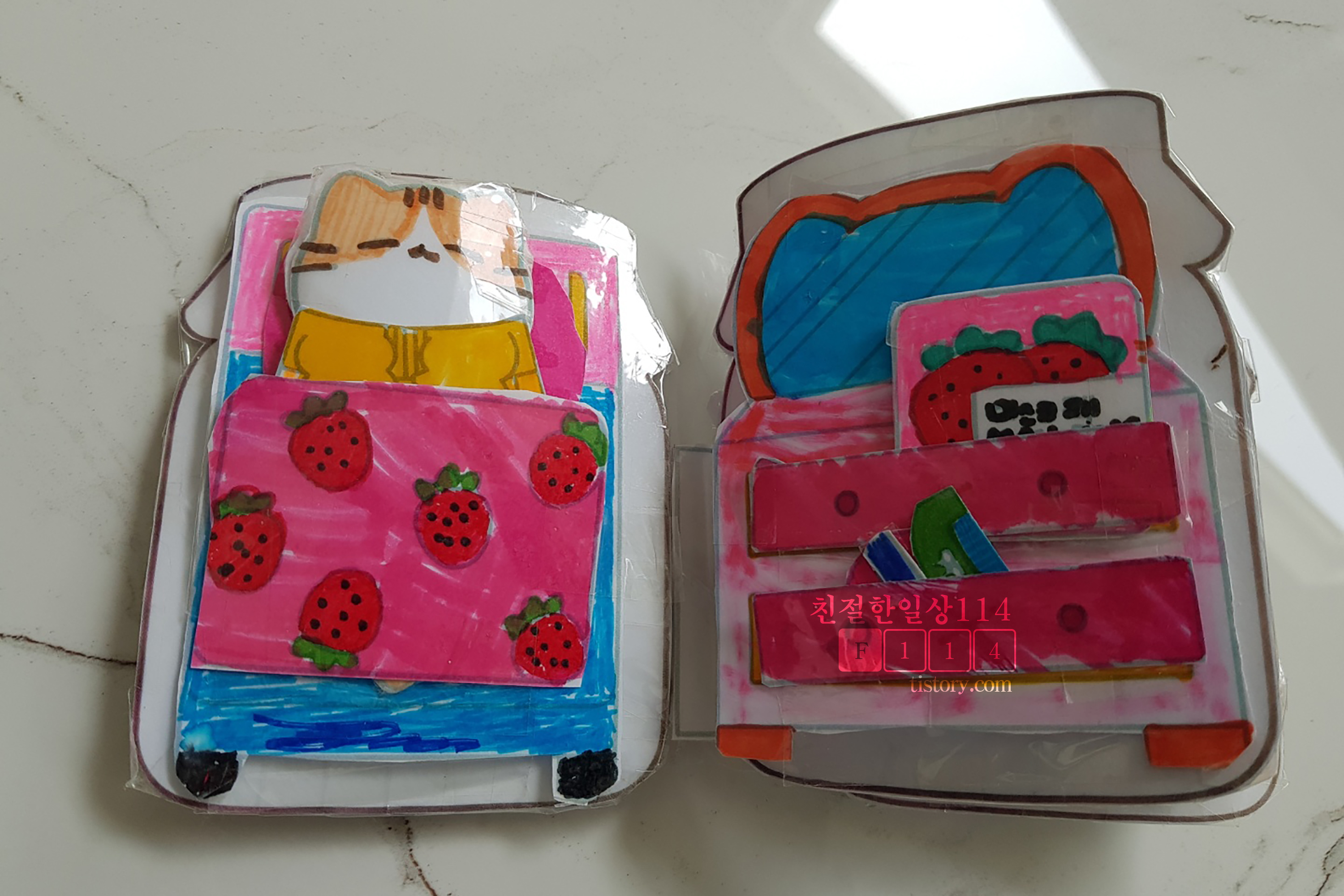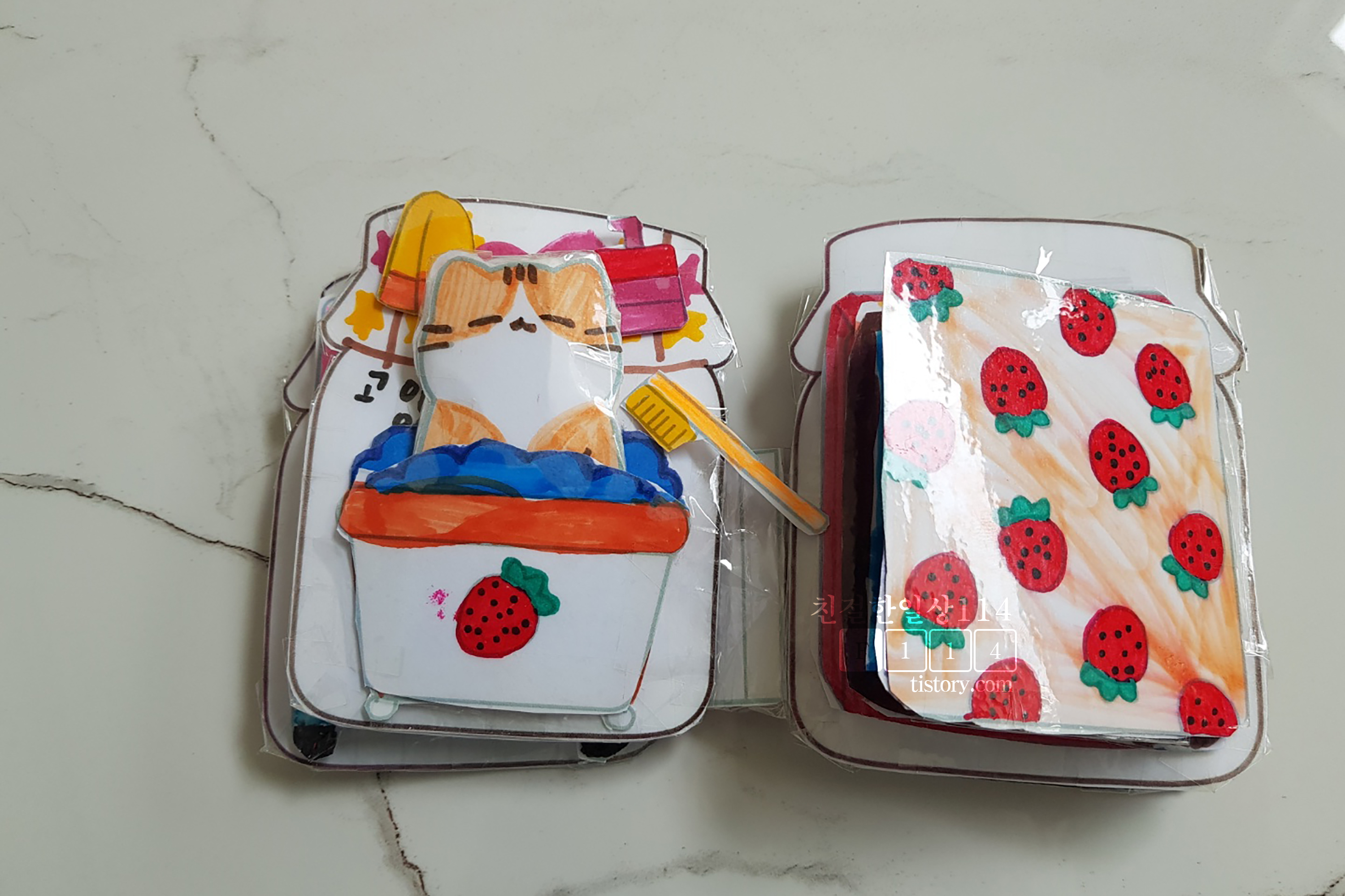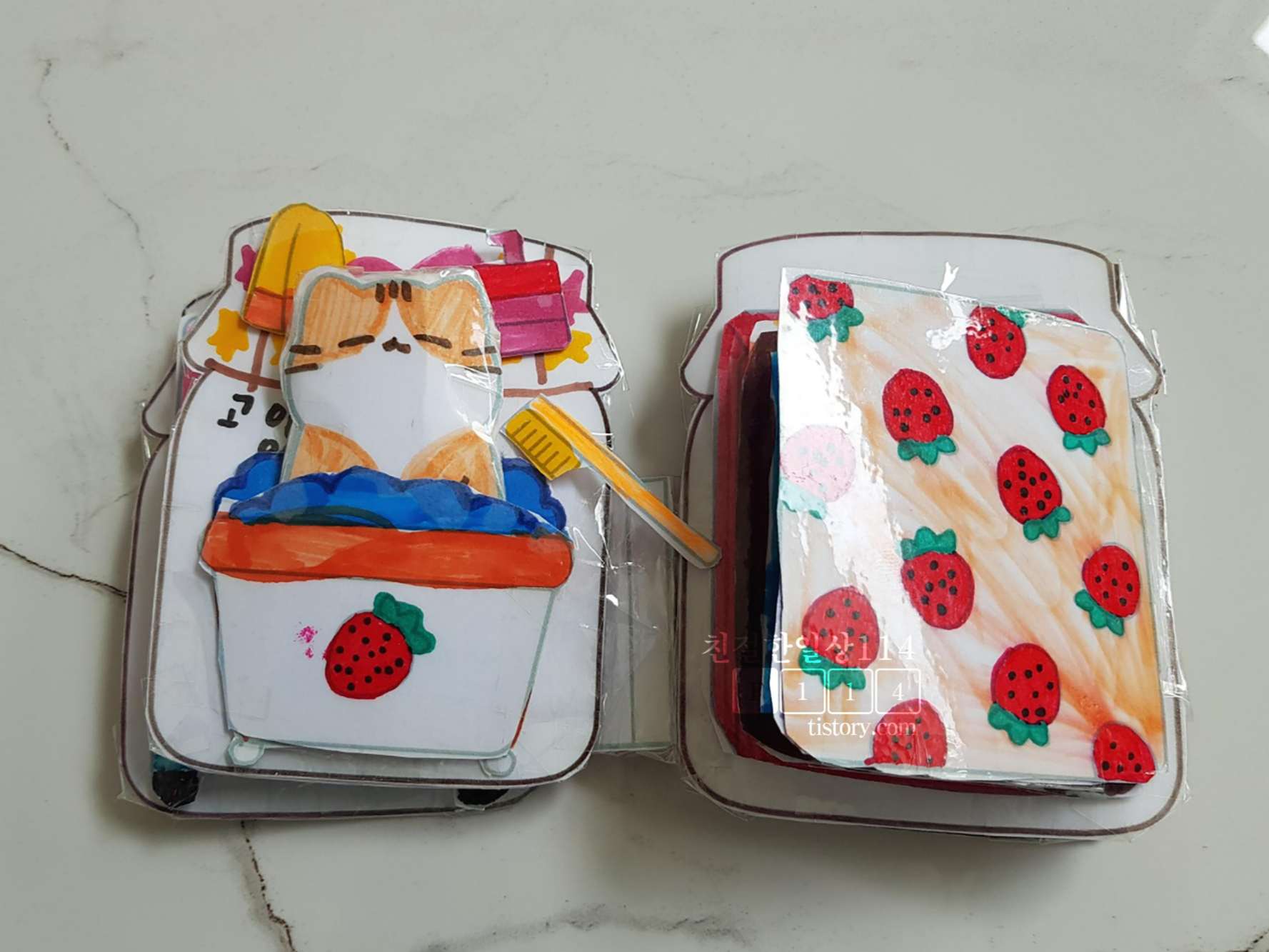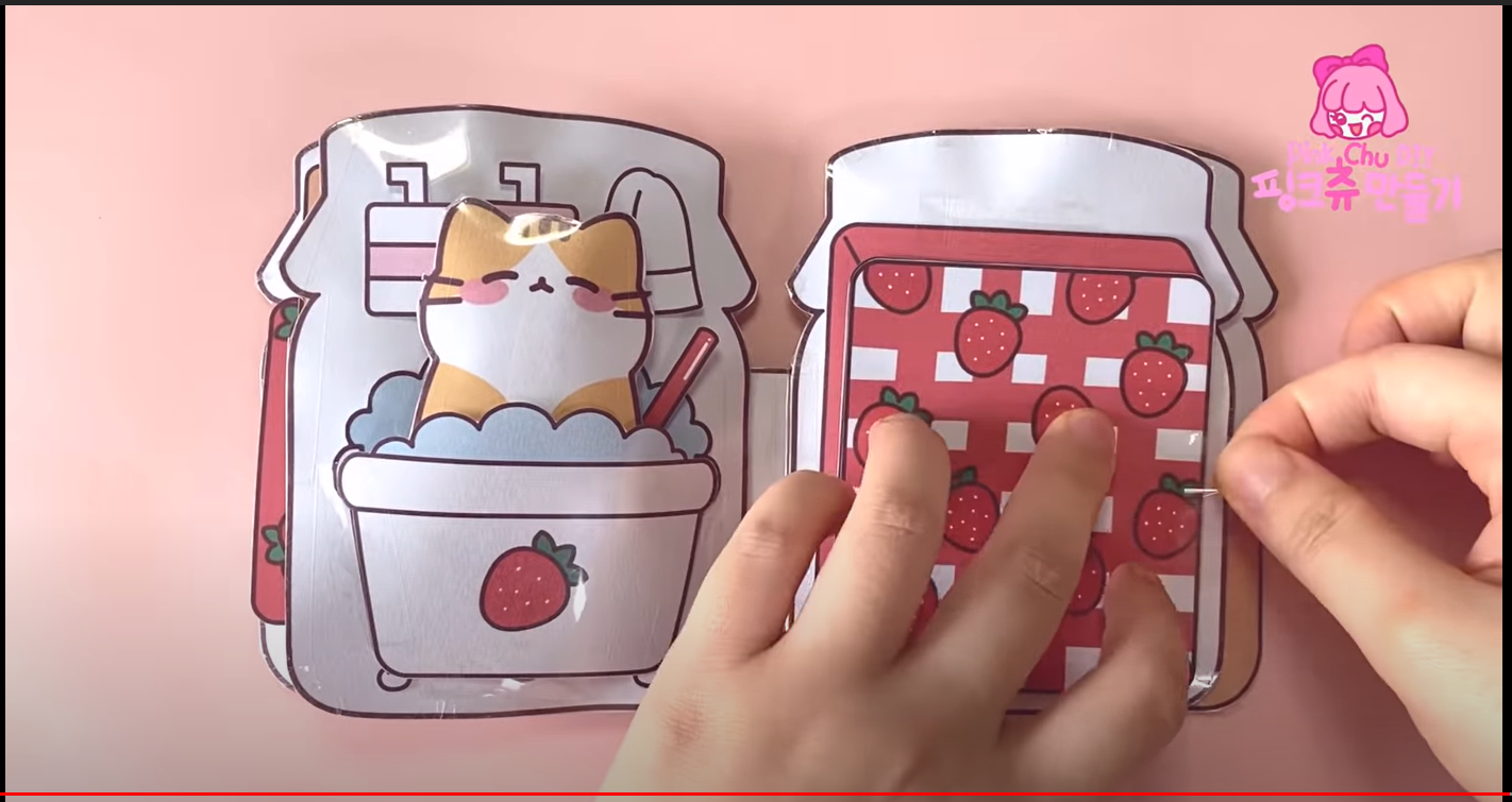 (200) 딸기잼 스퀴시북 만들기 | 고양이 인형놀이 | 무료도안 | Diy Strawberry Jam squishy book | Free printable - YouTube 영상을 보면 만드는 방법 가지고 노는 영상이 나오는데 아기자기 한게 여자아이들이 딱 좋아할만 하다. 영상 링크를 들어가면 무료도안을 다운 받을 수 있는 링크가 걸려있다.