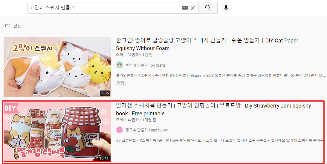 유튜브(youtube) 추천영상에서 뜬걸 보고 알게된 딸기쨈 스퀴시북 만들기 영상.