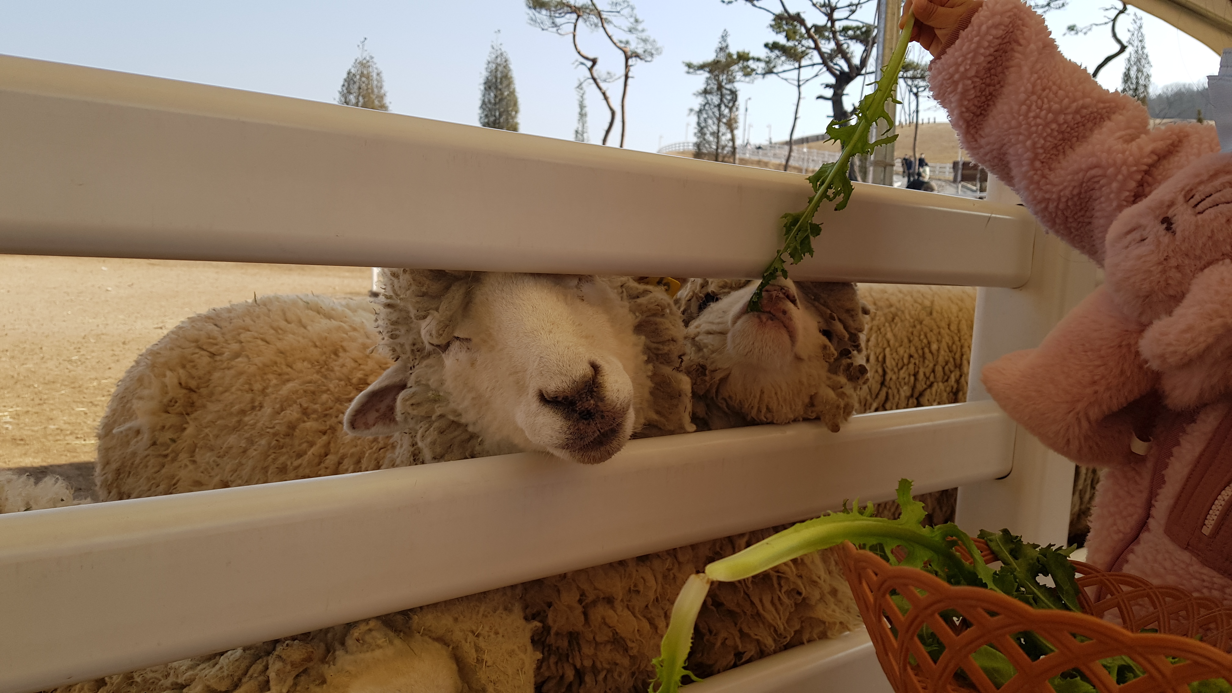 양에게 줄 먹이를 사서 바구니를 들고 가면 양들이 냄새를 맡아서인지 몰려든다. 오전에 가서 사람들이 먹이를 주기전이라 배가 고파서 일 수도 있겠지만 풀을 먹으려고 몰려드는게 재밌고 신기하기도 했다.