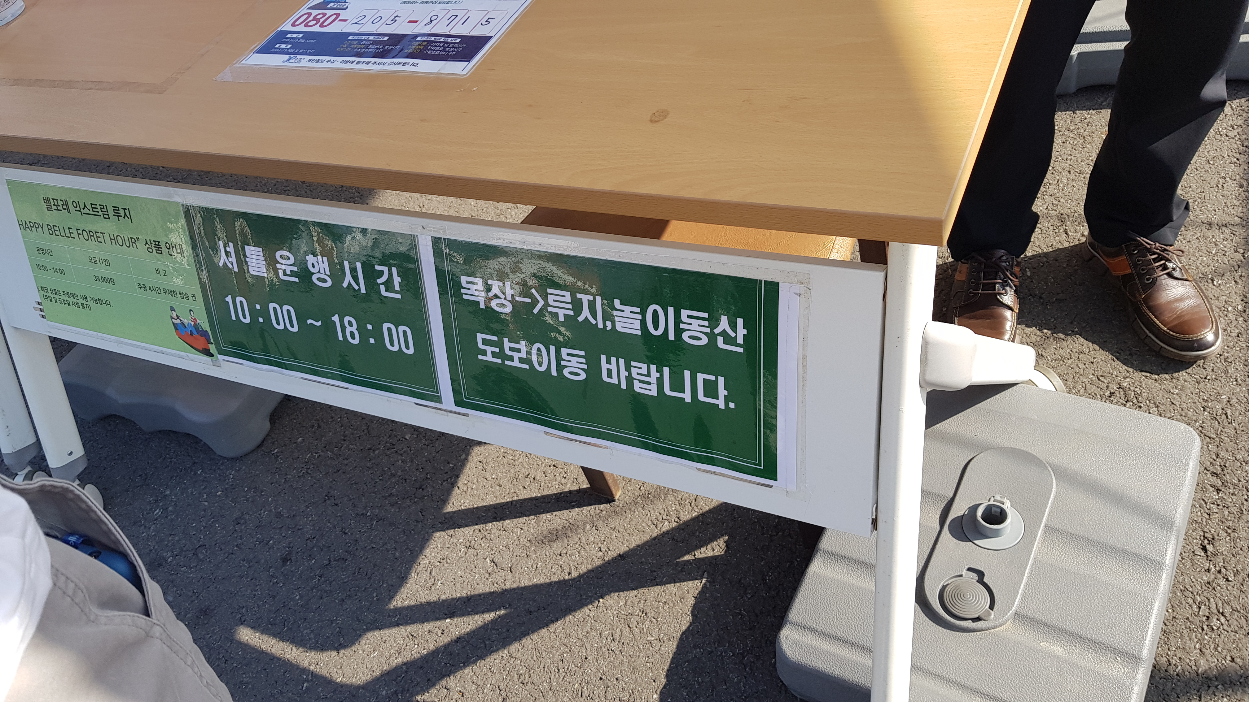 셔틀버스 정차는 주차장 -> 루지,놀이동산 -> 목장 -> 주차장 이렇게 운행하며 만일 목장을 보고 루지,놀이동산을 가려면 걸어서(도보) 가야한다. 목장 <-> 루지,놀이동산 거리는 셔틀버스로 1~2분정도이며 걸어서는 5분정도면 될것 같다. 필자는 이번에 루지,놀이동산은 들리지 않고 목장만 둘러보고 왔다.