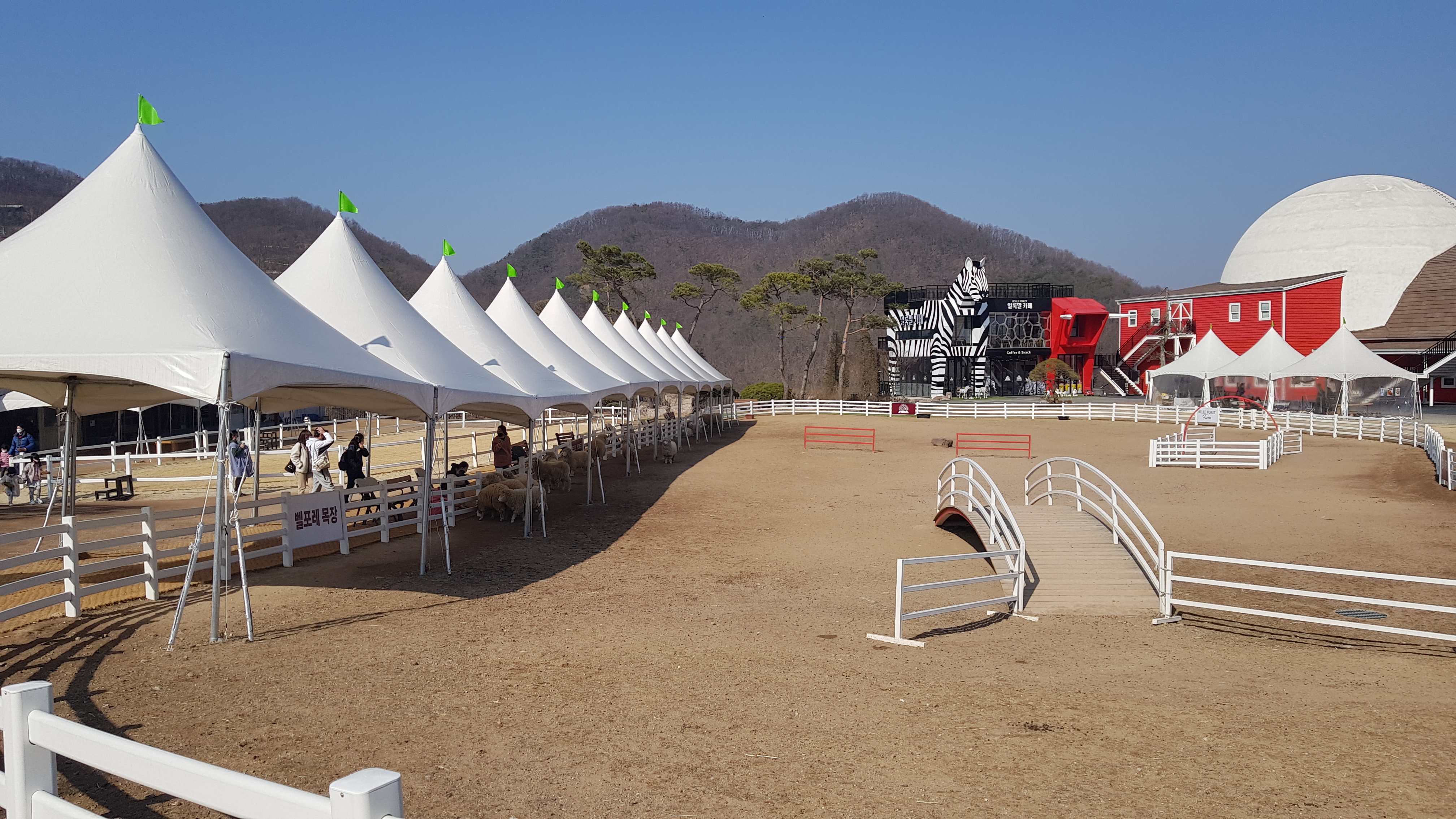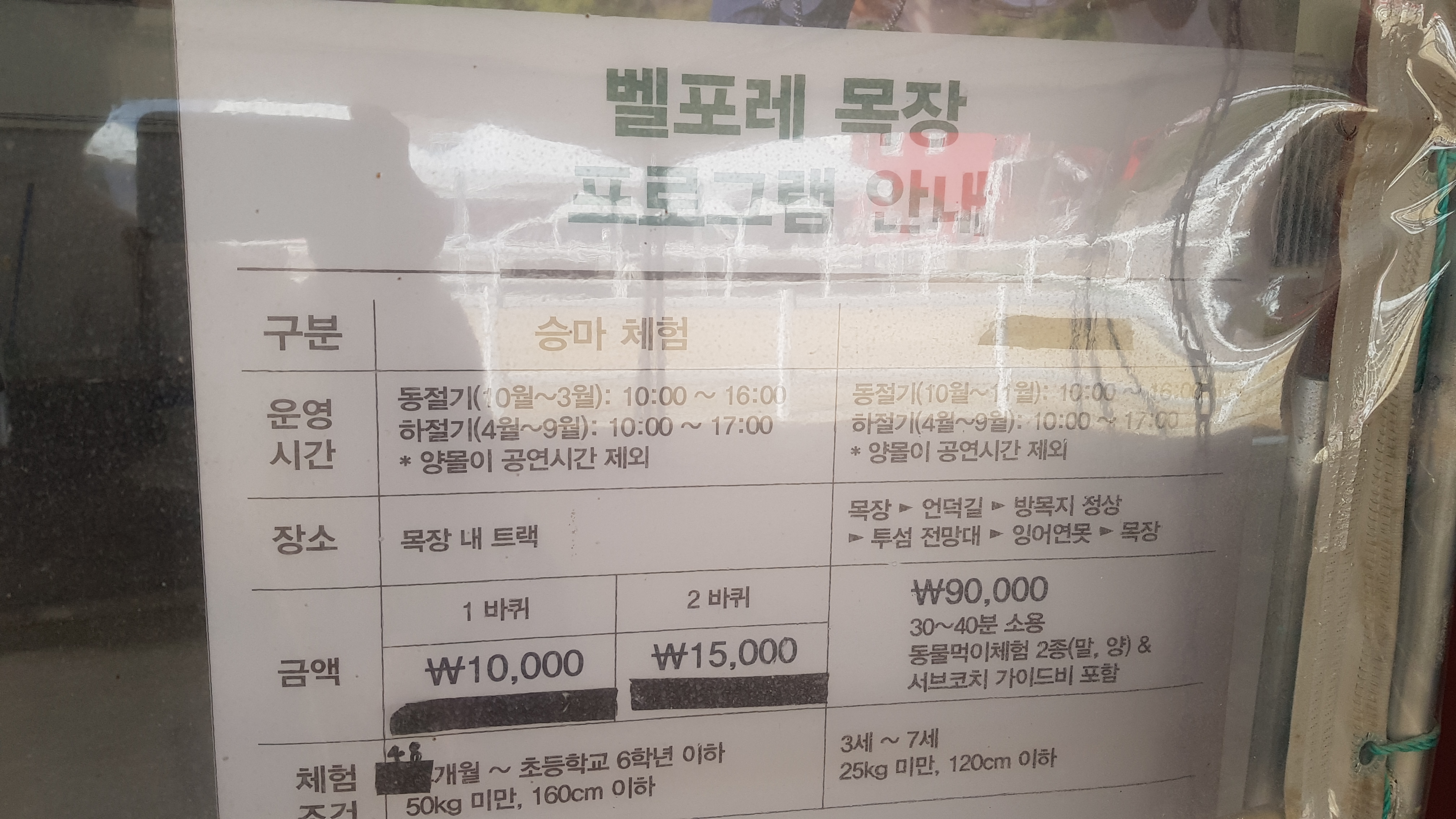 먹이 파는곳에서 본 목장 프로그램 안내에서 승마체험이 있는걸로 봐서 직원에게 물어보니 승마는 12시 넘어서 한다고 한다. 시간이 있어서 주변을 구경하며 기다리기로 했다.