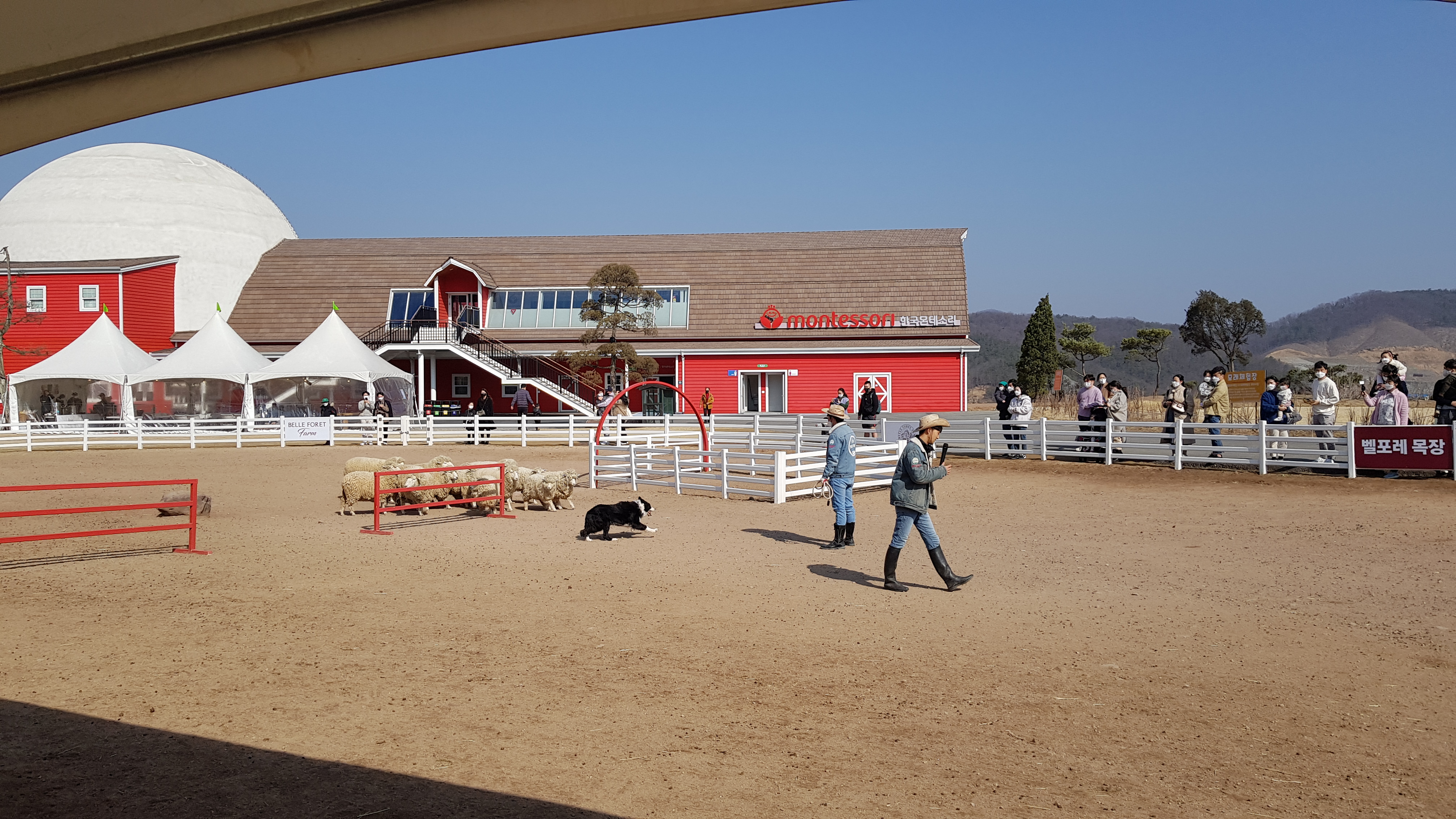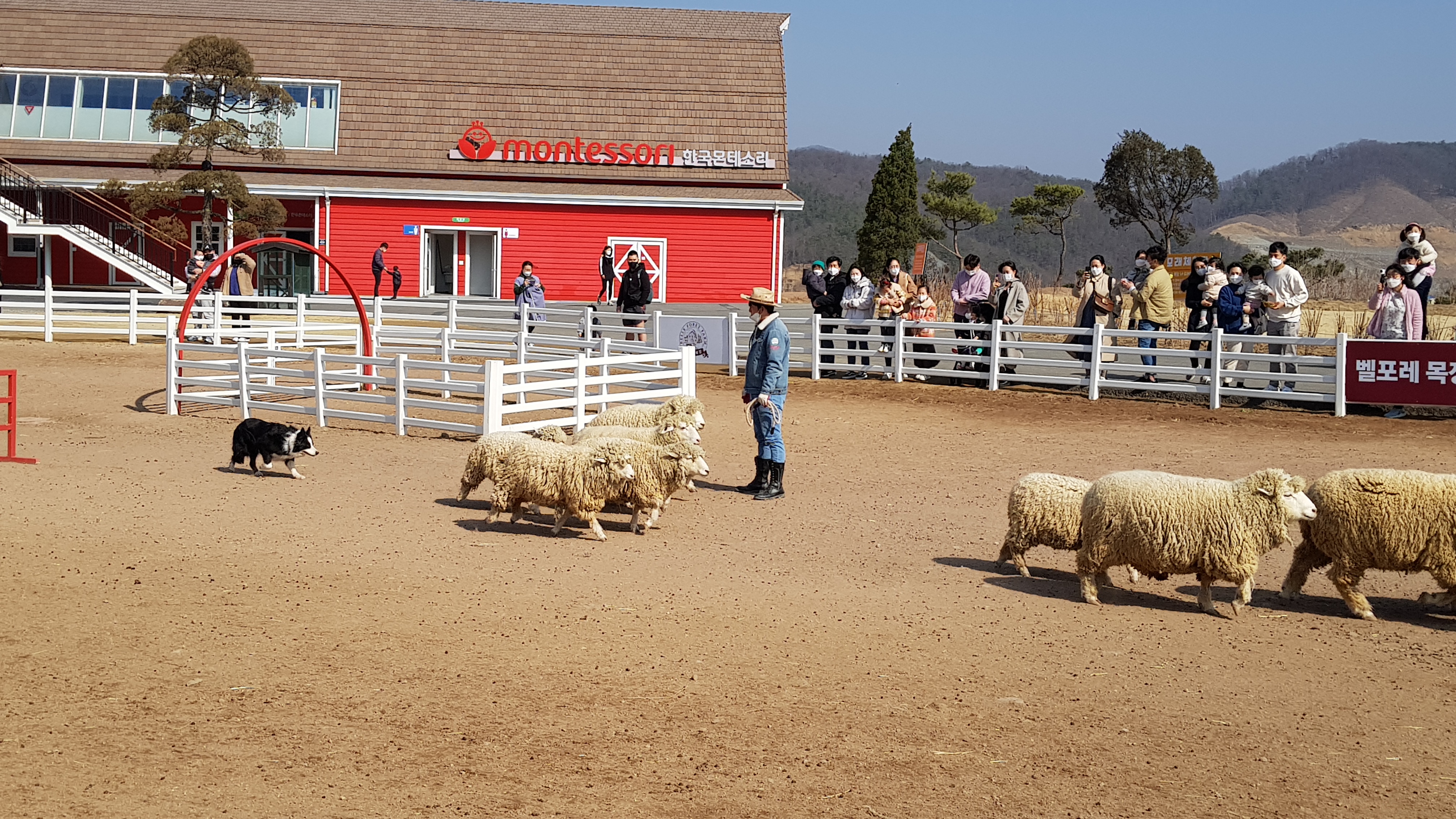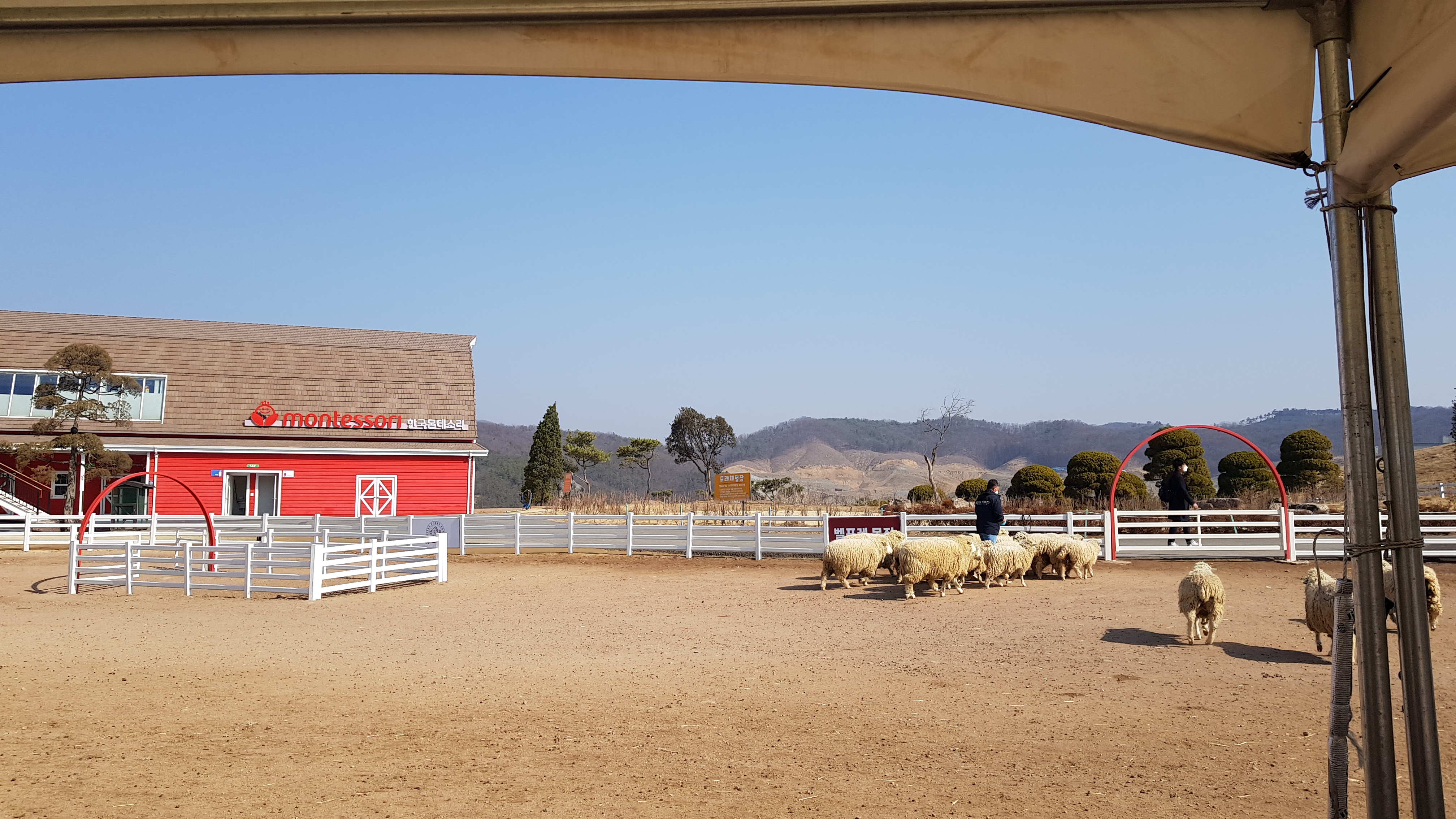 양이랑 말에게 먹이를 주고 있자니 잠시 후 양몰이 공연이 있을 예정이라고 안내 방송이 나온다.